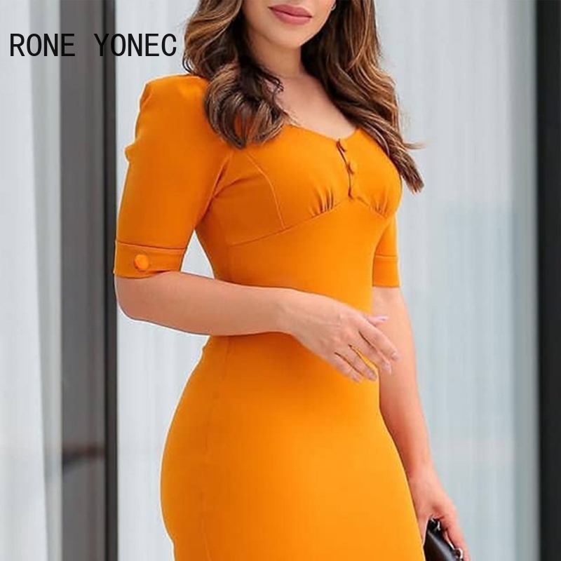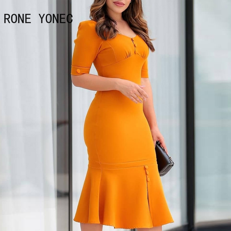 2024 Women Solid Short Sleeves Button Decoration Mermaid Bodycon Formal Party Dresses