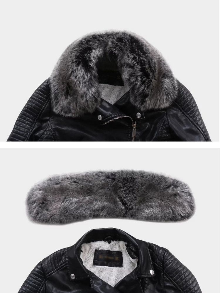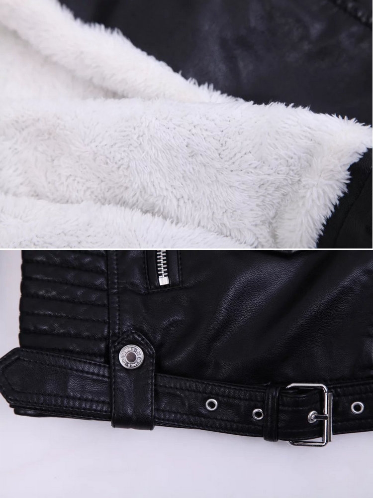 2025 Hot Fashion Women New Winter Warm Faux Leather Jackets with Fur Collar Belt Ladies Thick Black Moto & Biker Outerwear Coats