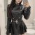 2025 New American Retro Sexy Black PU Leather Design Woman Dress Y2k Belted Slim Fit Female Punk Gothic Style Clubwear Outfits