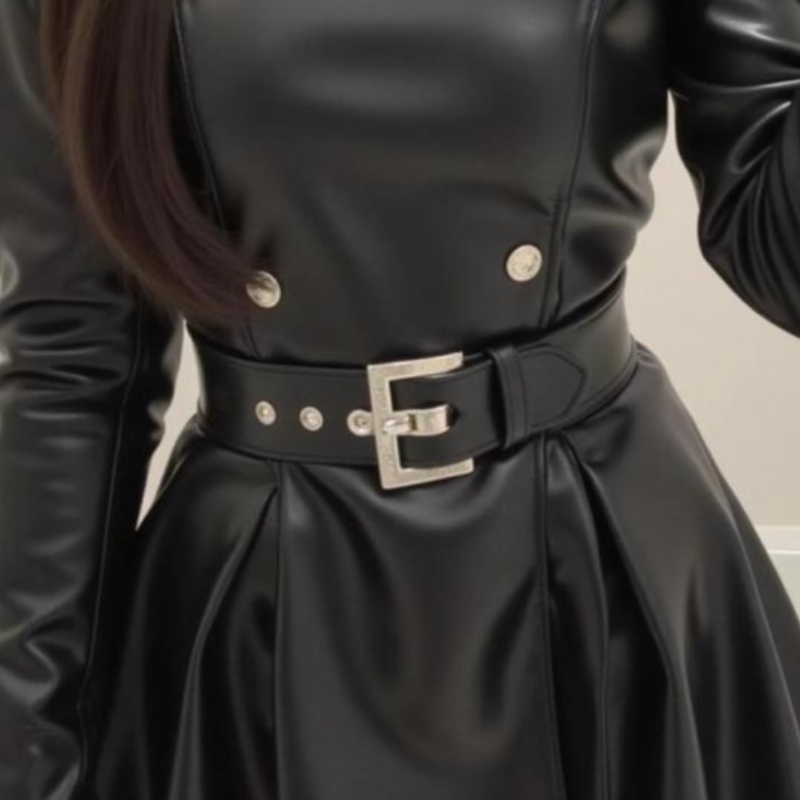 2 reviews for 2025 New American Retro Sexy Black PU Leather Design Woman Dress Y2k Belted Slim Fit Female Punk Gothic Style Clubwear Outfits