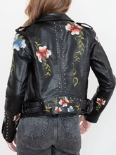 2025 New Women’s High Street Floral Print Embroidery Faux Leather Jackets Female Moto & Biker Rivet Black Punk Outerwear Coats