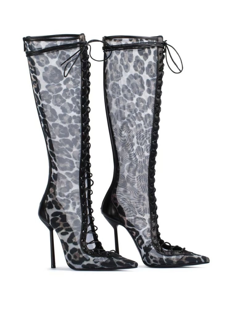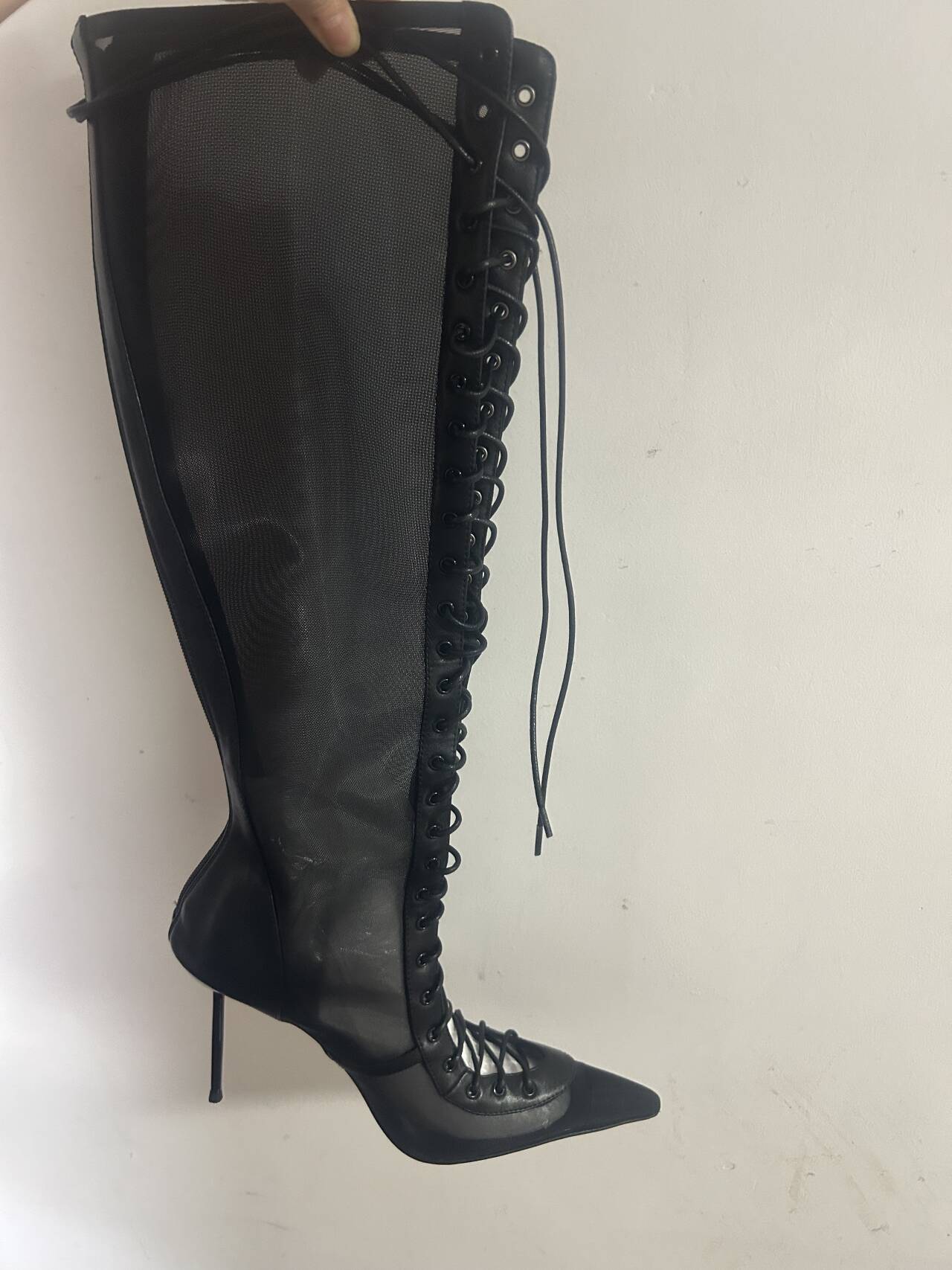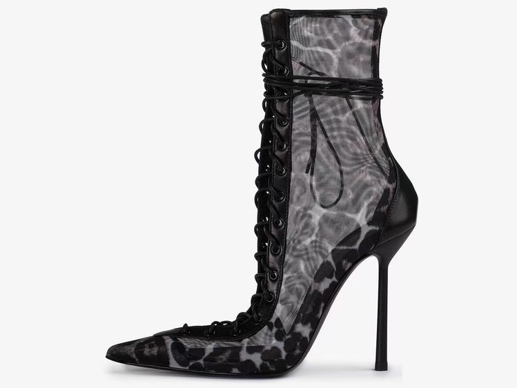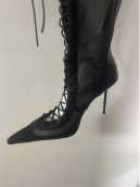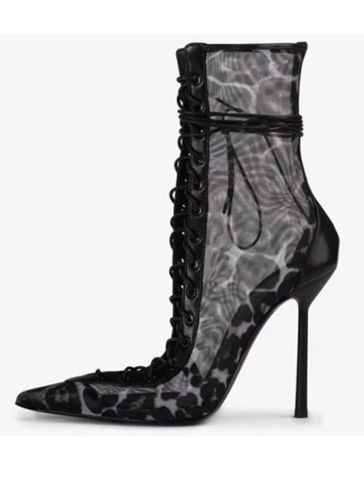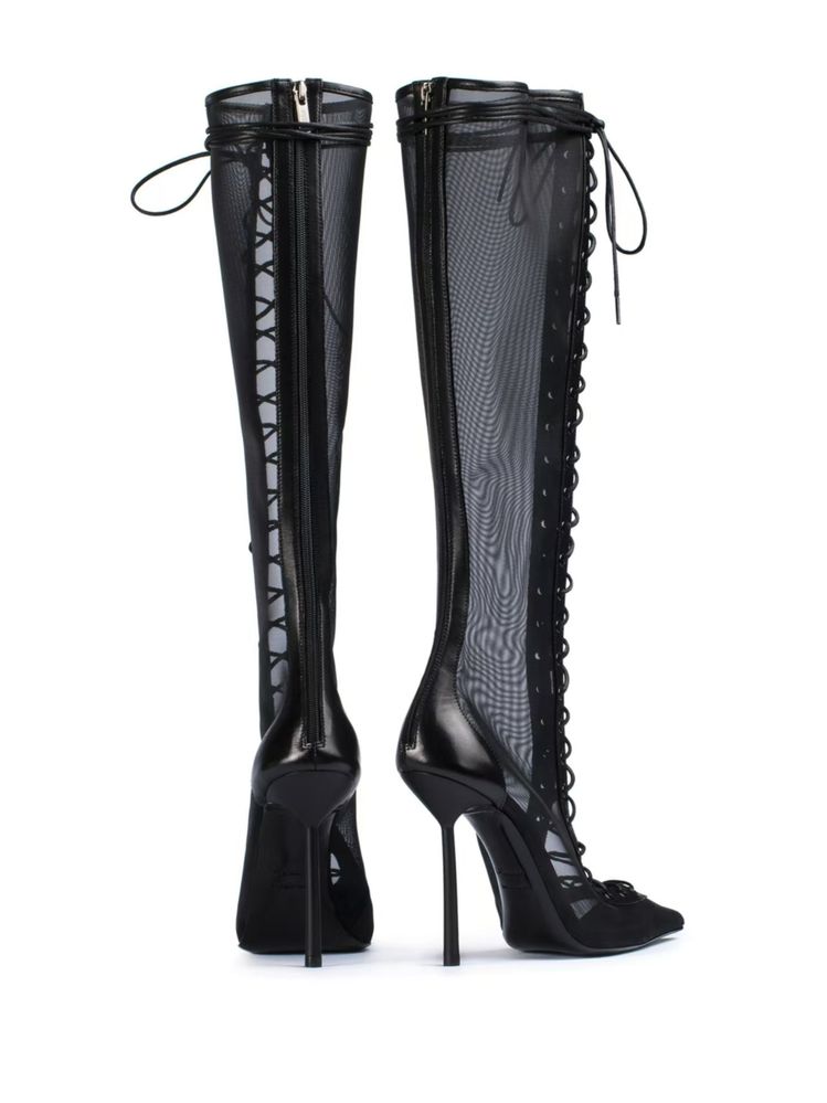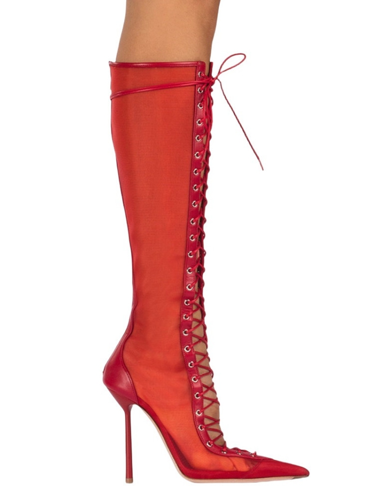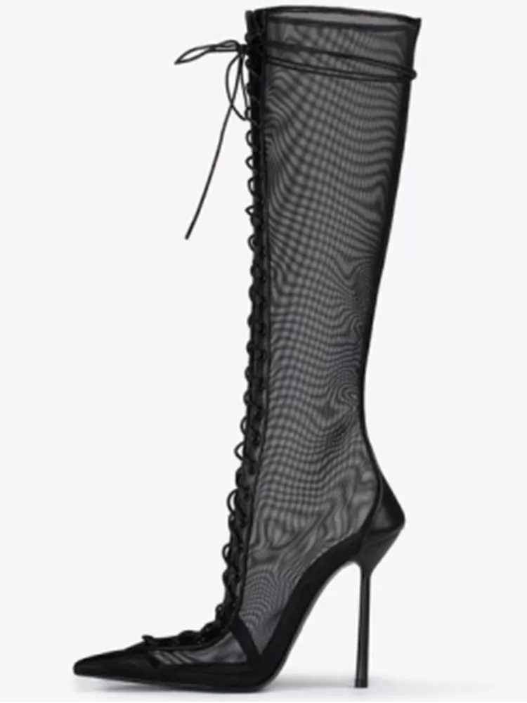 2025 Spring/Summer New Lace Short Mesh Cool Boots Side Zipper Banquet Slimming High Heels Sexy Knee Length Women’s Boots