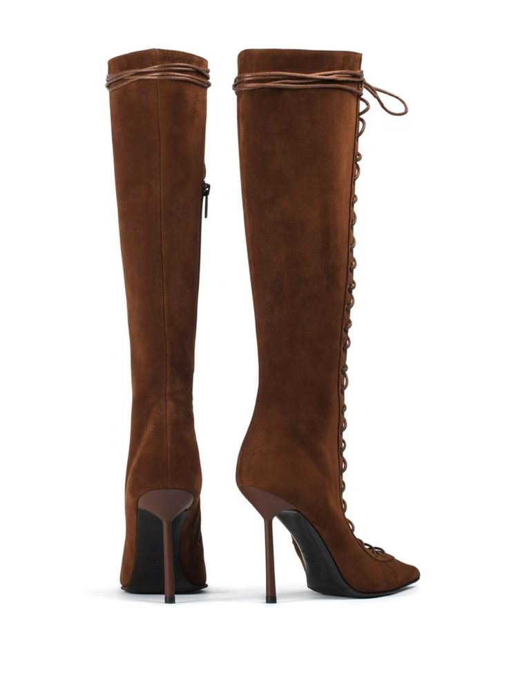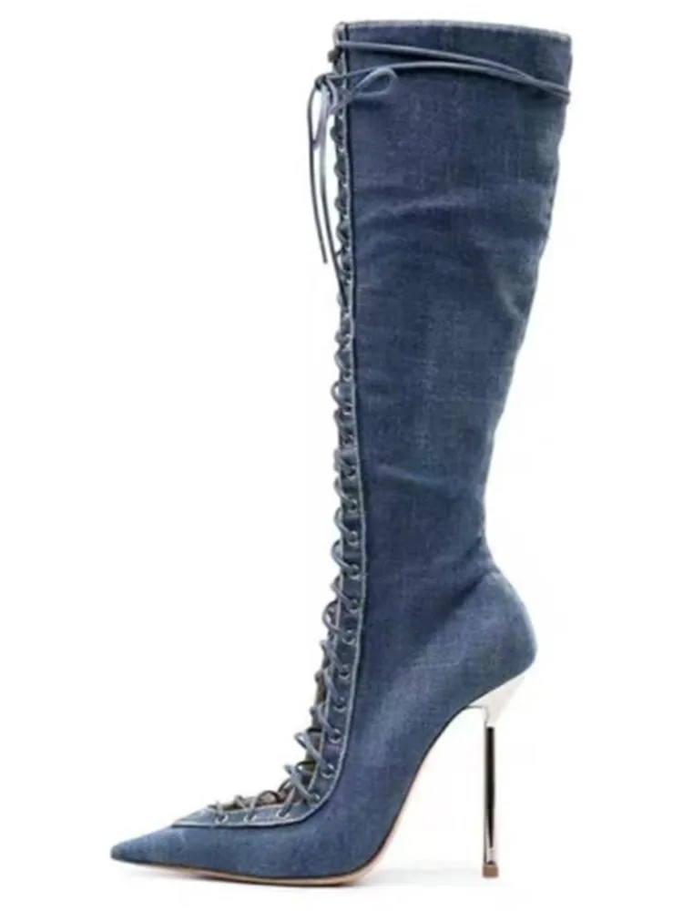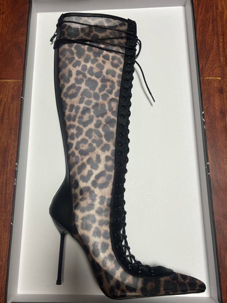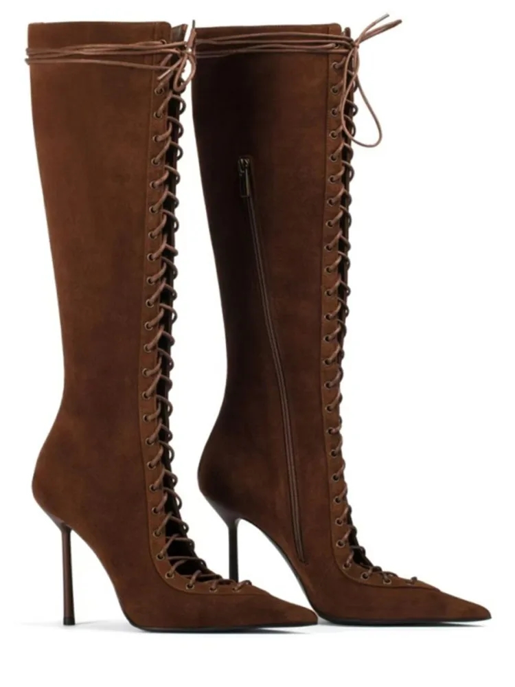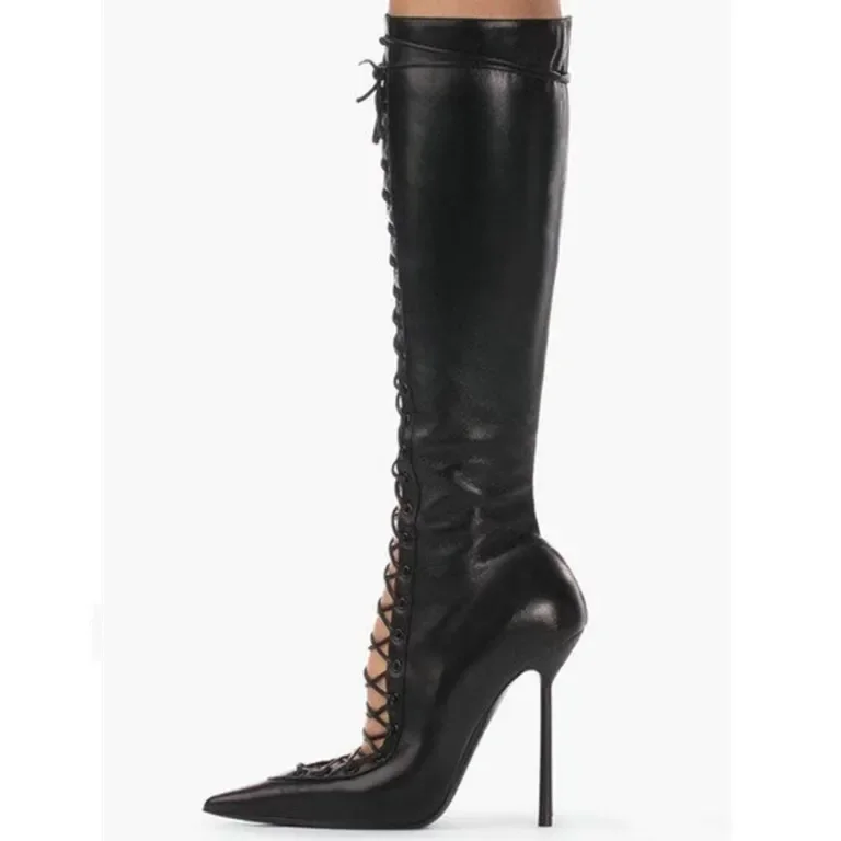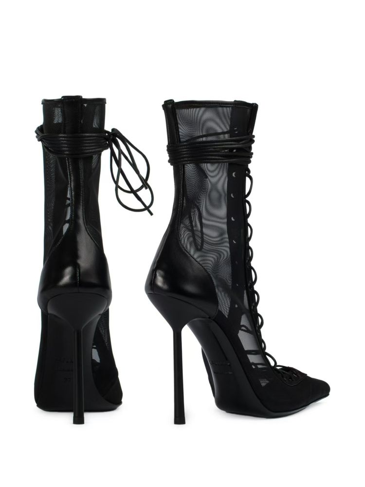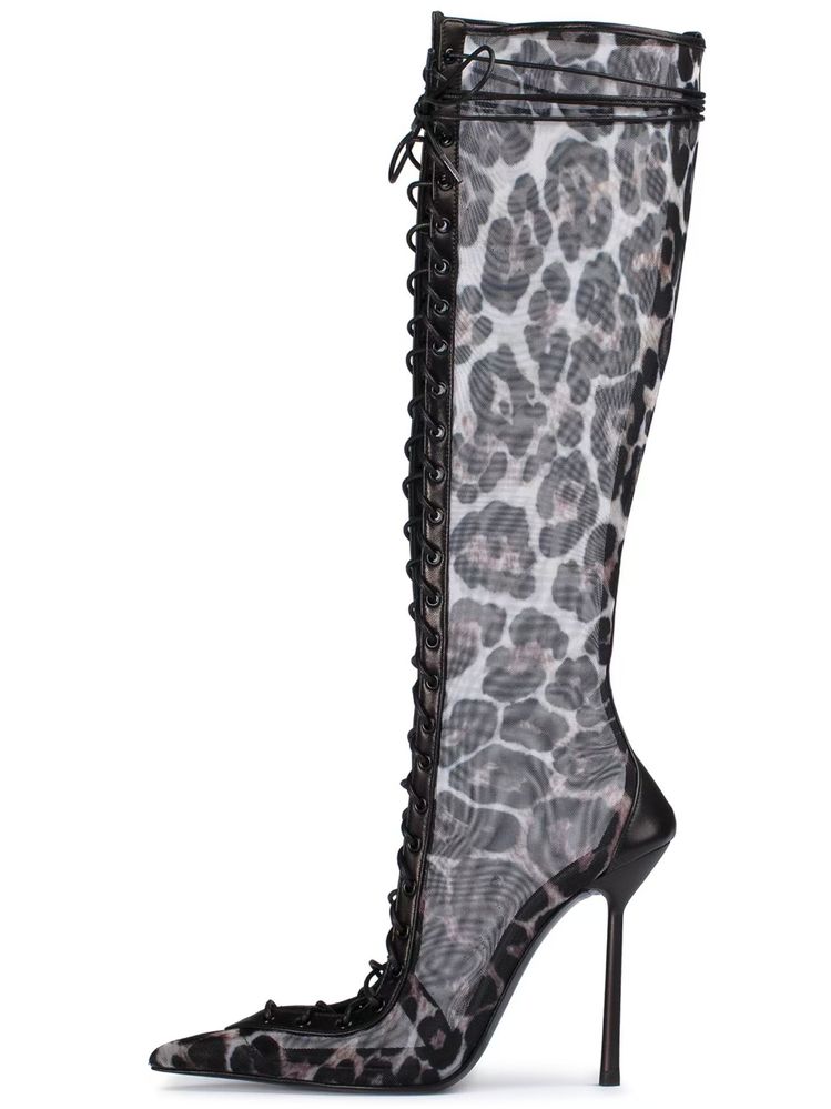 2025 Spring/Summer New Lace Short Mesh Cool Boots Side Zipper Banquet Slimming High Heels Sexy Knee Length Women’s Boots