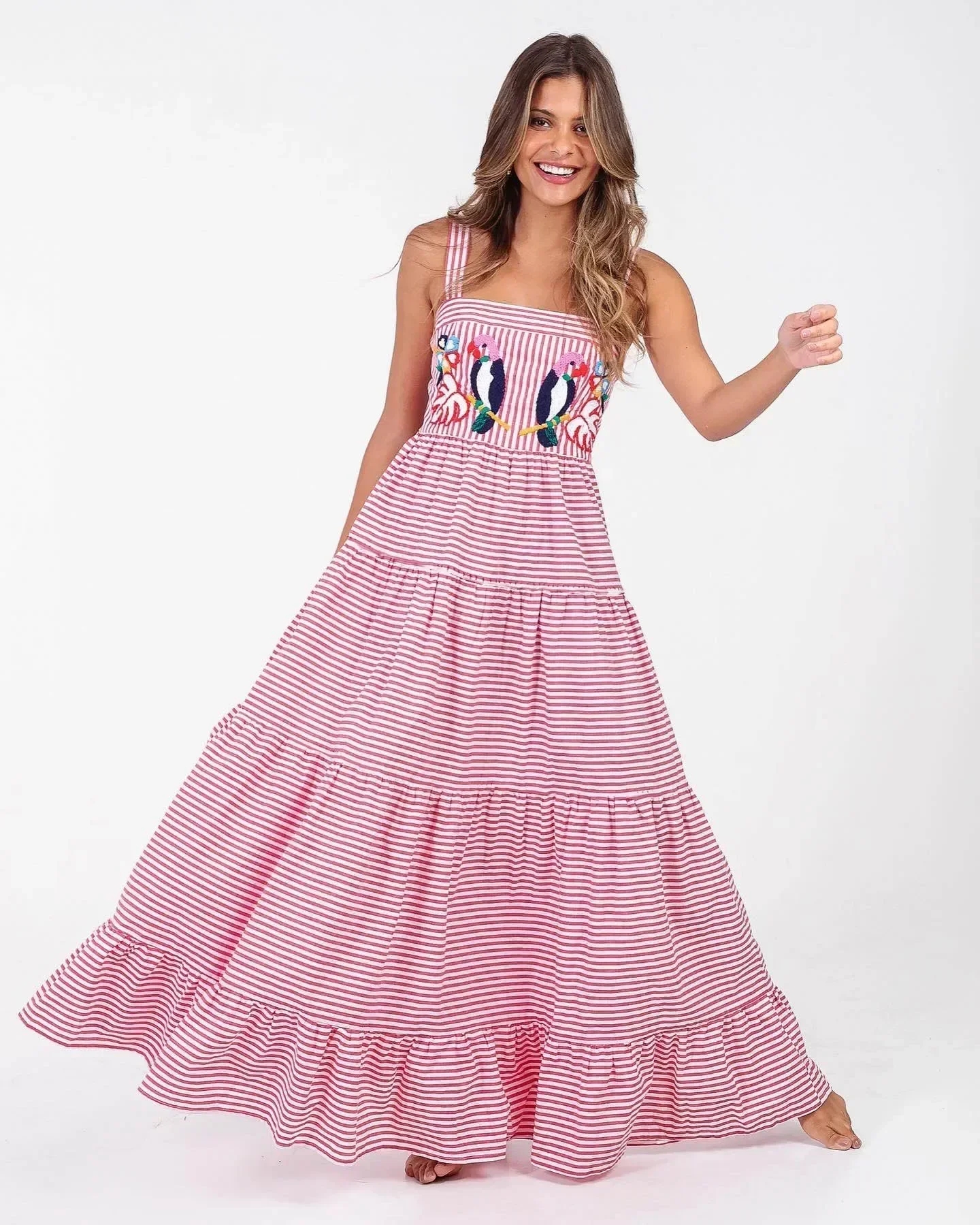 2025 Spring Women Dress Long Print Square Collar Sleeveless Loose Slip Dresses Female Elegant Casual Trendy Beach Ladies Clothes