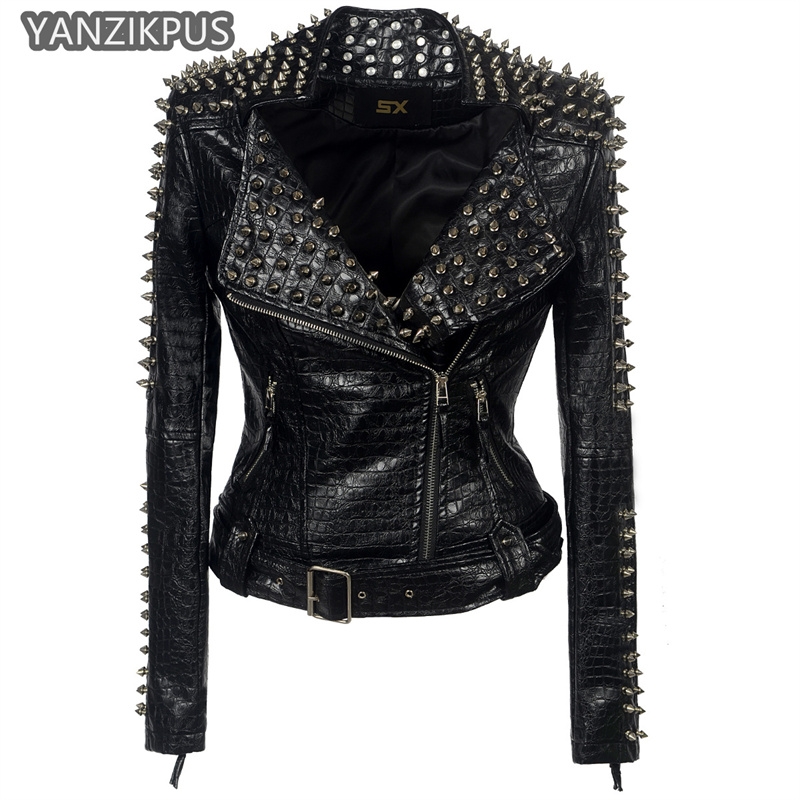 2025 Steampunk Rock Rivet Women’s Leather Jacket Slim Short Streetwear Gothic Embroidery PU Leather Locomotive Coat Femme