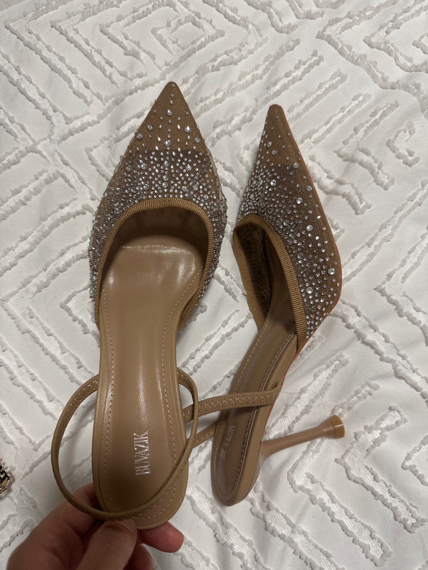 3 reviews for 2025 Summer New Women’s Sandals Water Diamond Bright Mesh High Heels Footwear Elegant Slingback Pointed Slip on Party Lady Shoes