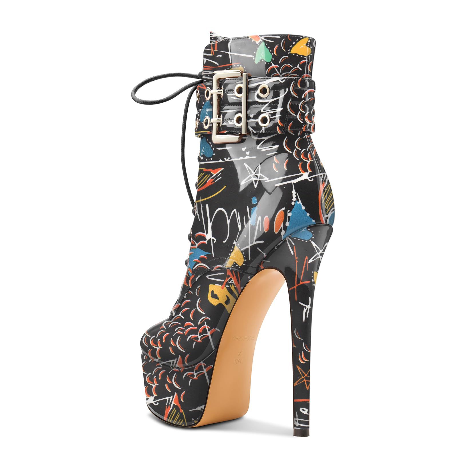 2025 Winter Short Boots Women New Europe and America Graffiti 15CM Stiletto High Heels Pole Dance Shoes Platform Ankle Boots 47