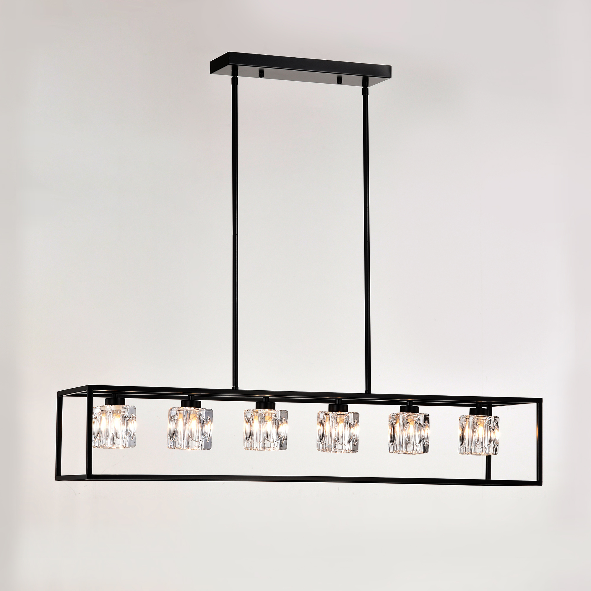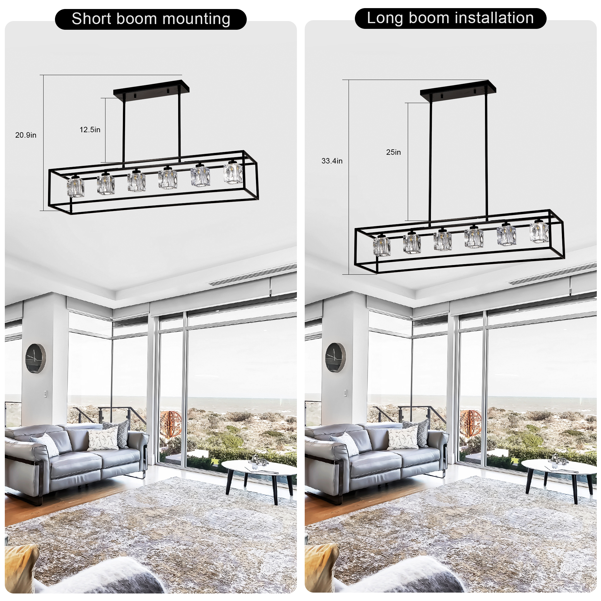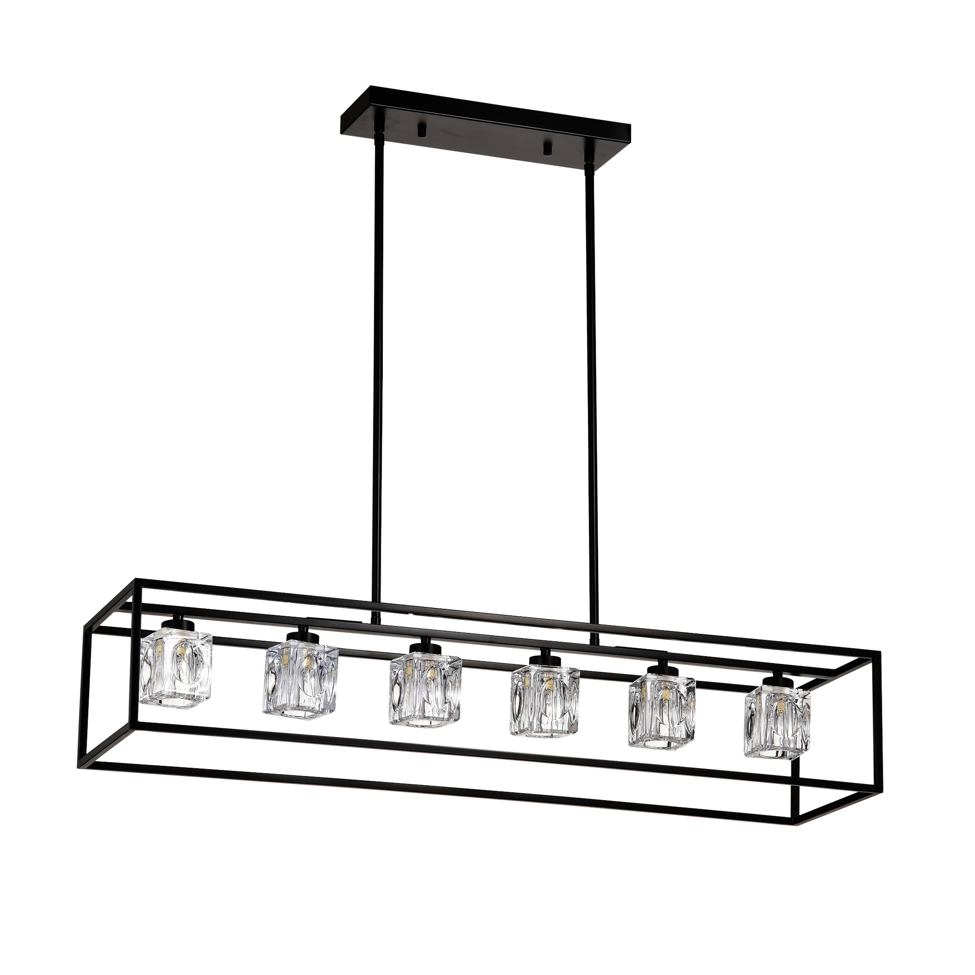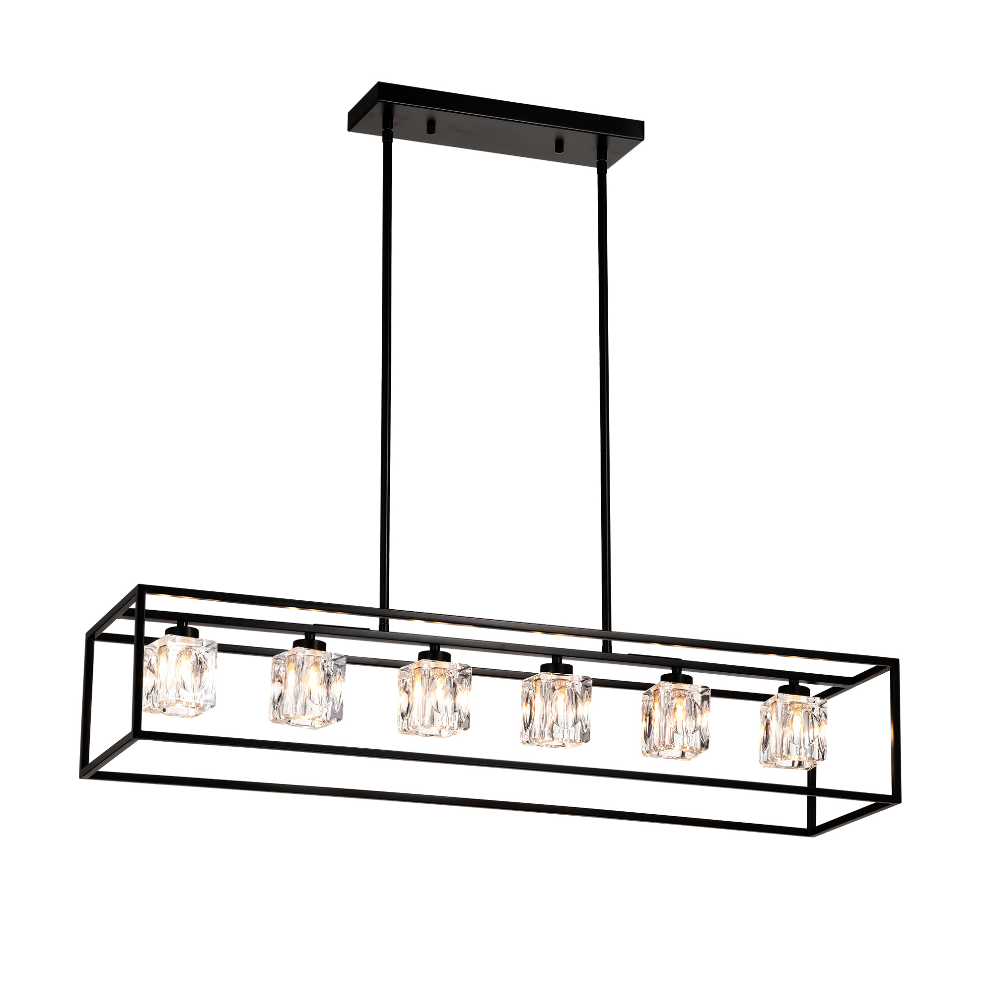 6-Light Farmhouse Chandelier, Modern Industrial Linear Rectangular Crystal Pendant Light Cage Chandelier for Dining Room,Kitchen