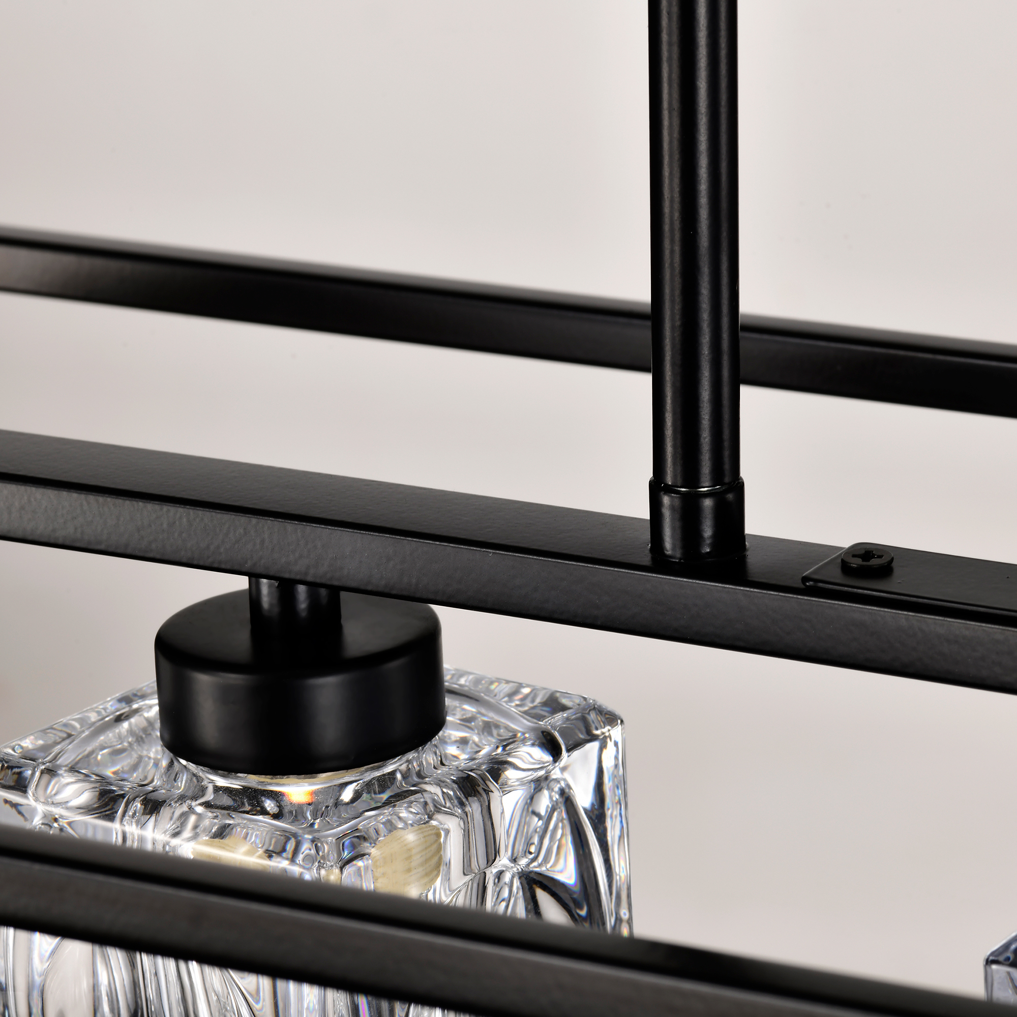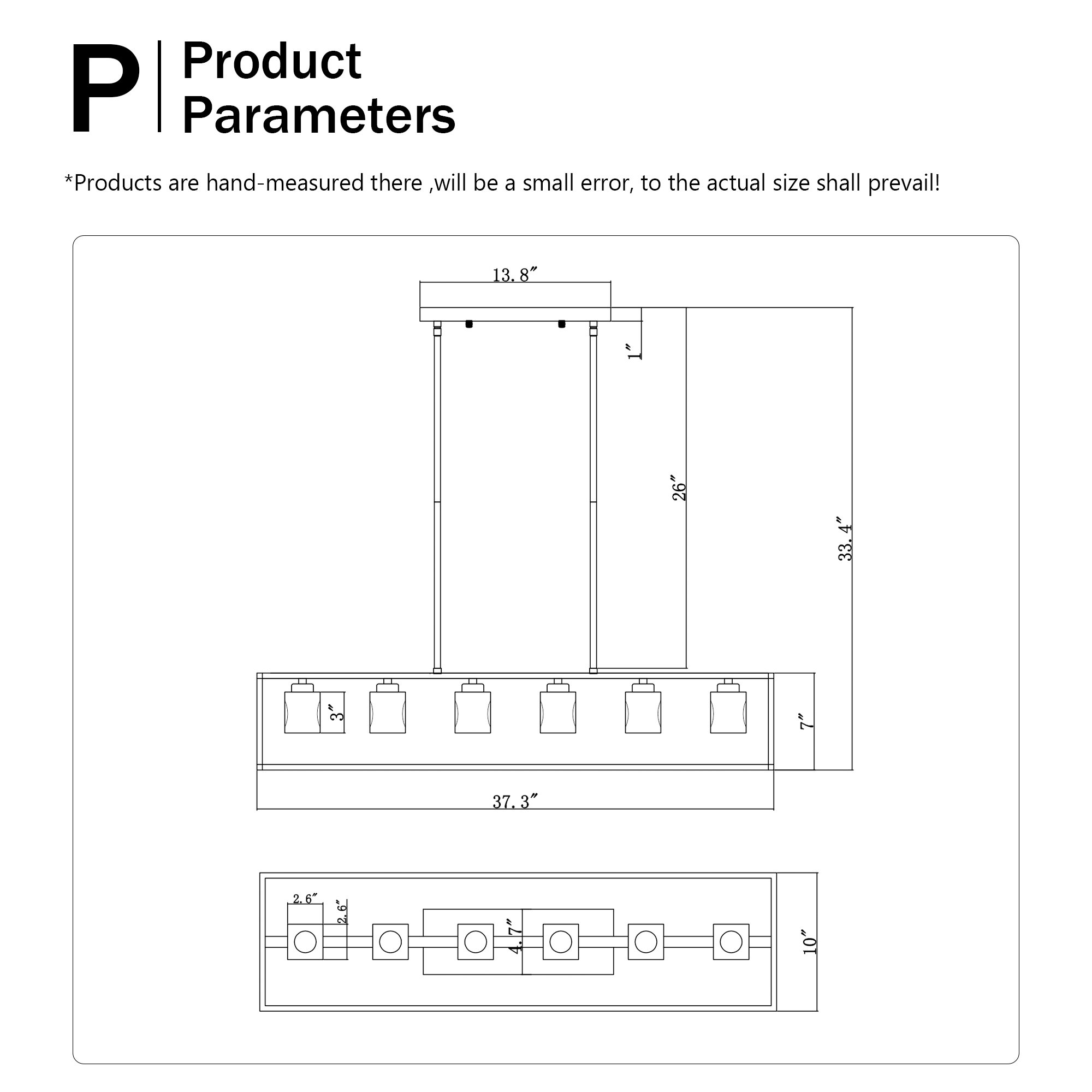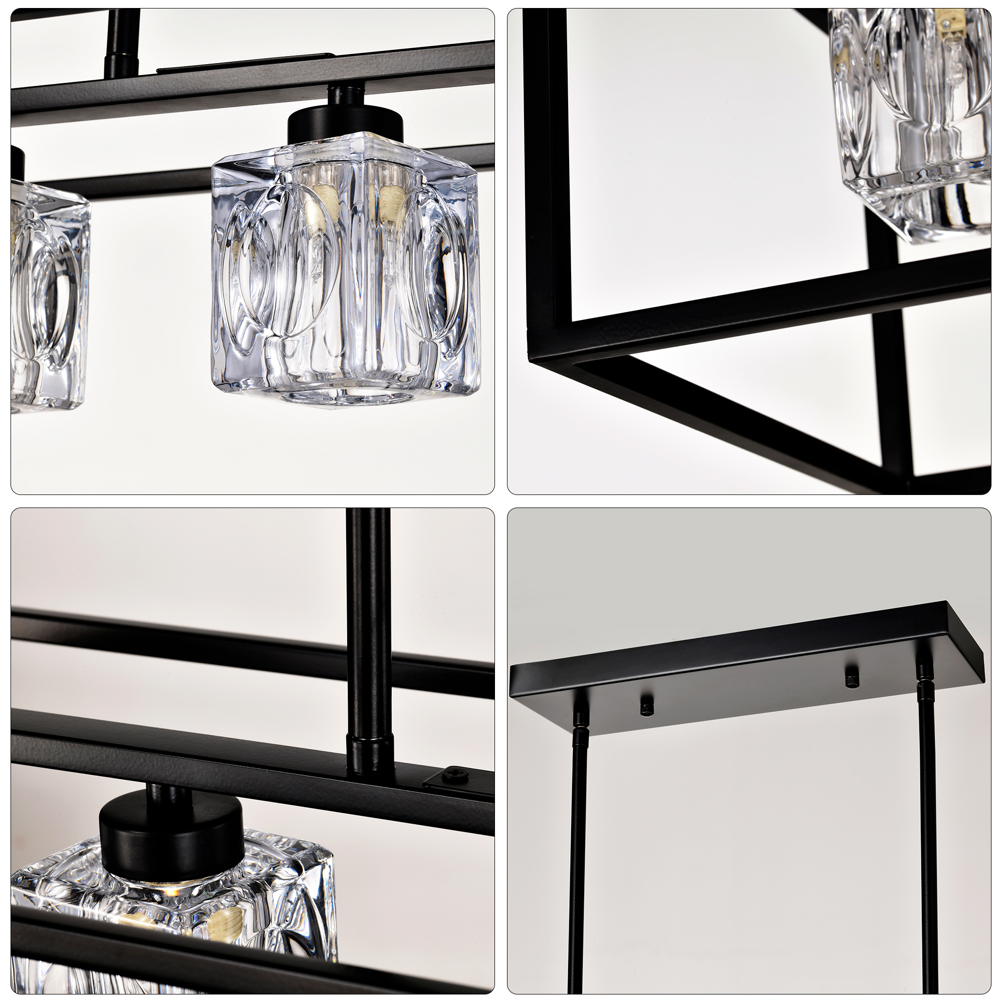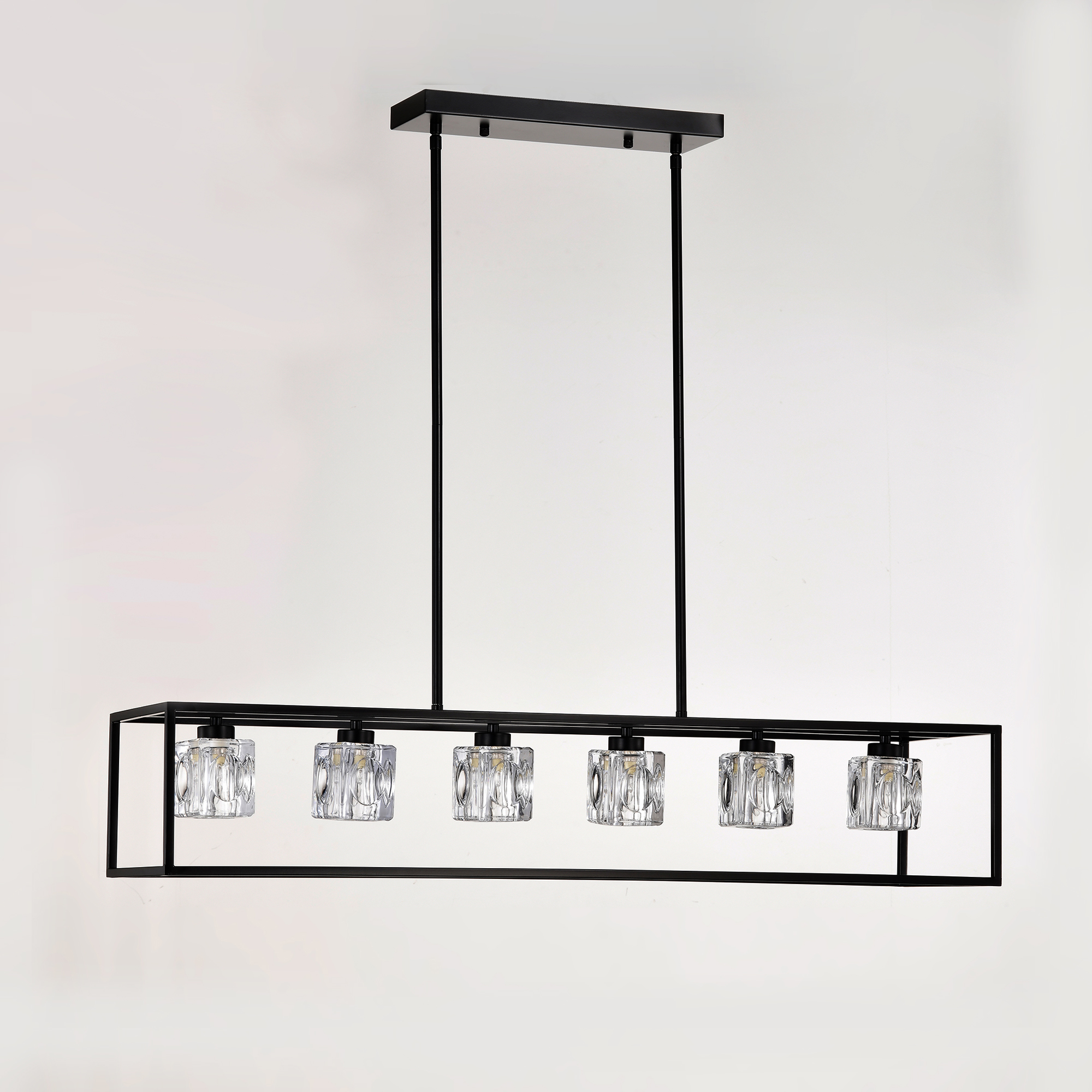 6-Light Farmhouse Chandelier, Modern Industrial Linear Rectangular Crystal Pendant Light Cage Chandelier for Dining Room,Kitchen