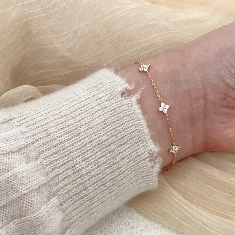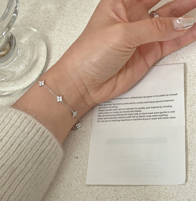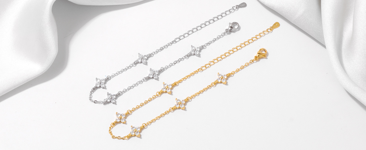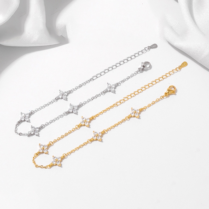 3 reviews for 925 Silver Plated Cz Four-leaf Flower Bracelet for Women Girl Cute Dainty Adjustable Link Chain Bracelet Trend 18k Gold Jewelry
