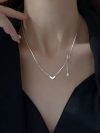 925 Sterling Silver Starry Sky Double Layered Water Drop Necklace for Women Collarbone Chain Pendant Jewelry Wedding Party Gift