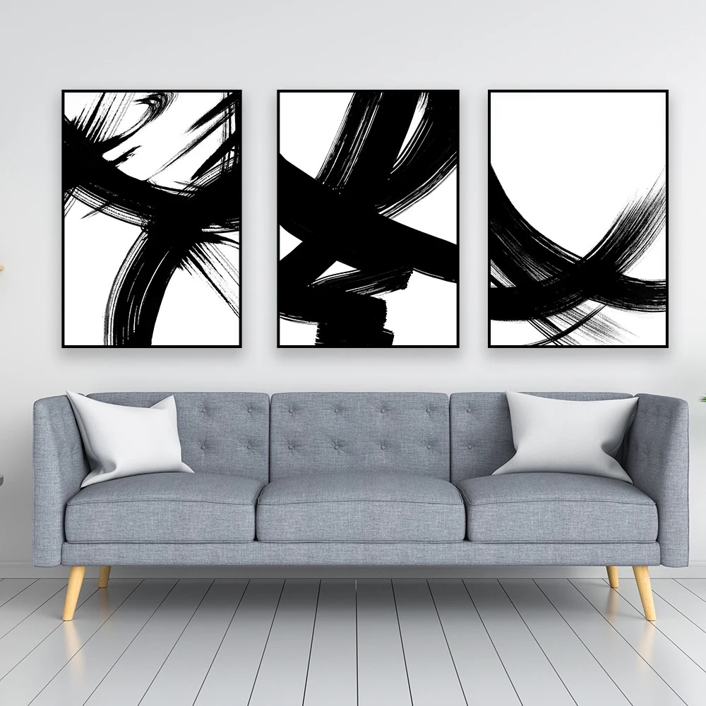 3 reviews for Abstract Canvas Painting Poster Minimalist Black and White Brush Strokes Print Modern Gallery Wall Decor Home Living Room Decor