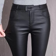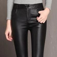 Add Velvet/No Velvet Black Faux PU Leather Pant Women High Waist Stretch Leggings Autumn Winter Casual Skinny Pencil Trousers
