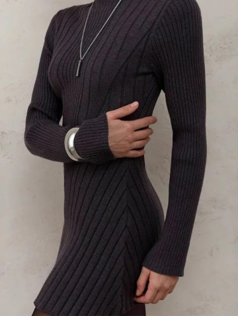 Talenza Women’s Knitted Dress Solid High Waisted Long Sleeve Sweater Bottoming Dress Fall Office Lady Women A-Line Dress Vestido