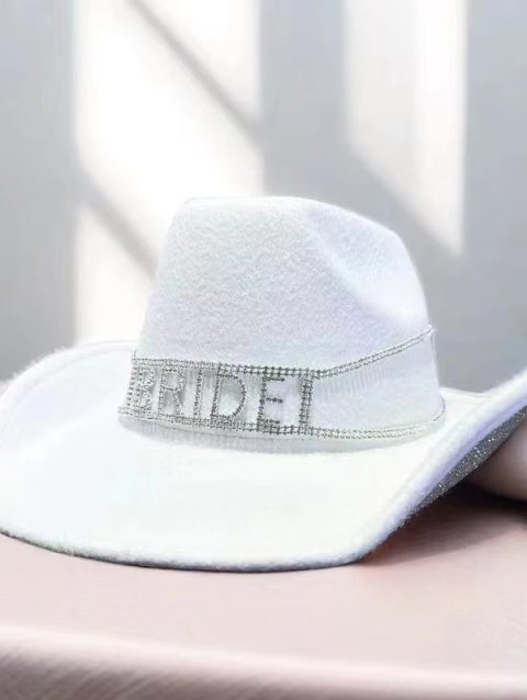 HongLuan BRIDE White Cowboy Hat for Women, Luxury Wedding Hats, Cowboy Accessories & Cowgirl Hats for Ladies Adults Woman