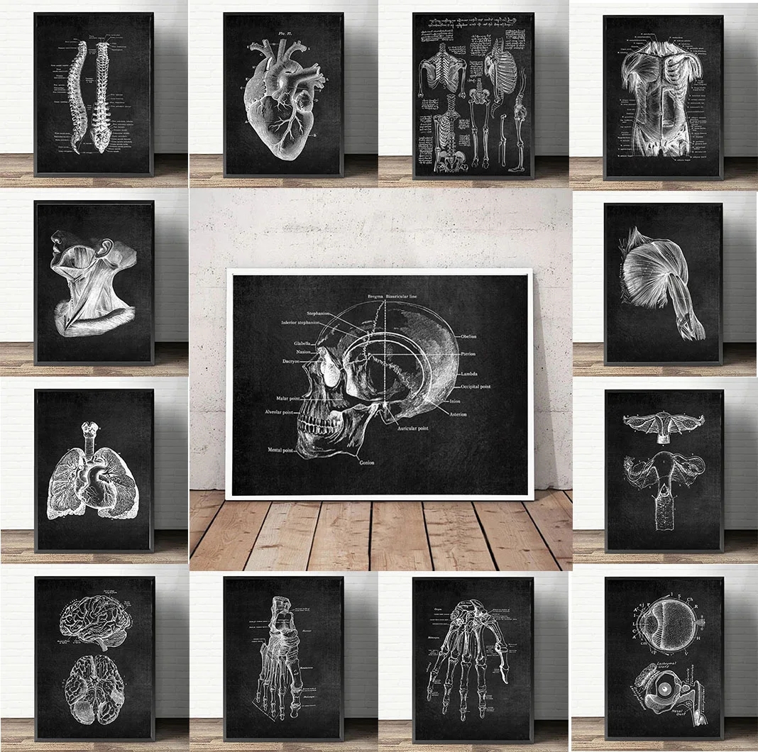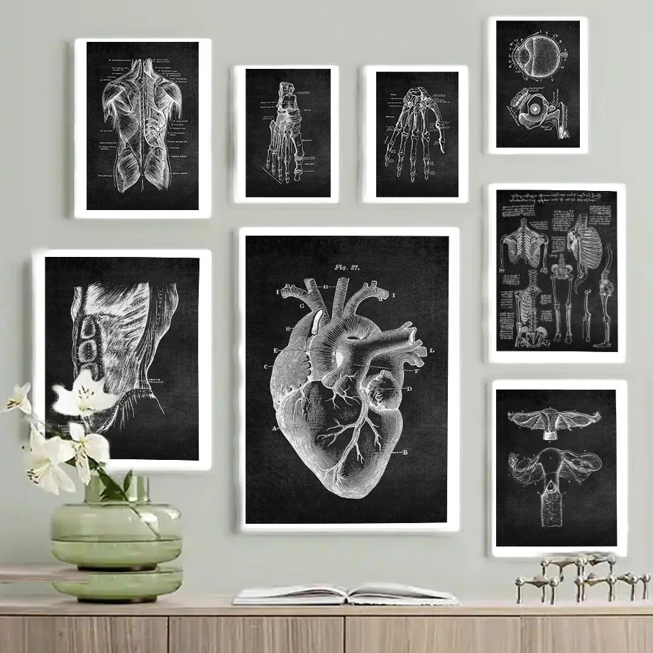 Anatomy Art White and Black Medical Canvas Painting Flower Organ Cardio Lung Poster Printing Education Hospital Home Decor