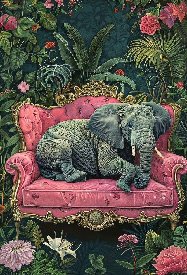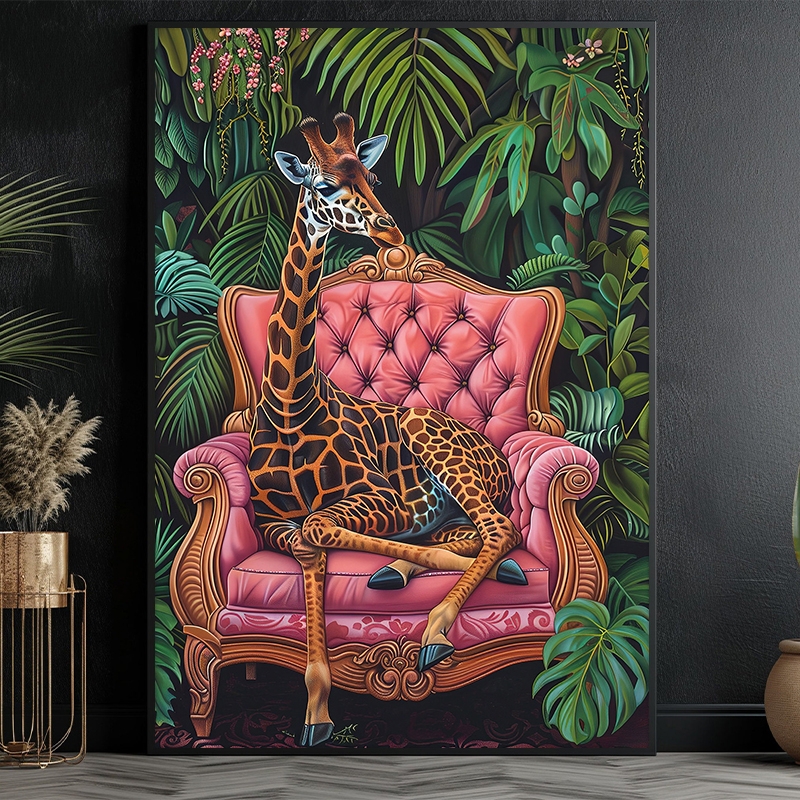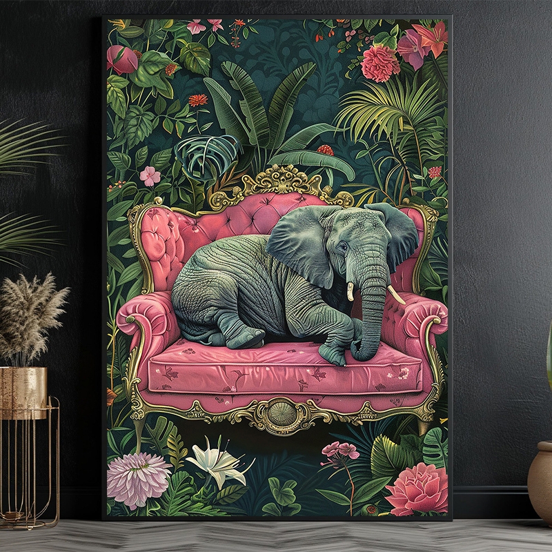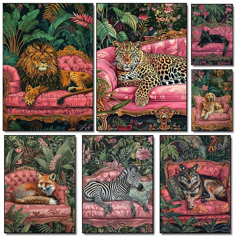 Animals on The Sofa Painting Posters Elephant Zebra Snake Leopard Prints Canvas Printing Retro Wall Art Picture for Home Decor
