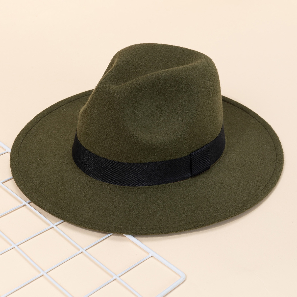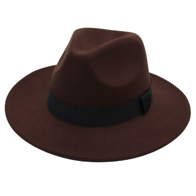 Autumn and winter men and women’s new large brimmed hats, fashionable woolen jazz hats, English style top hats