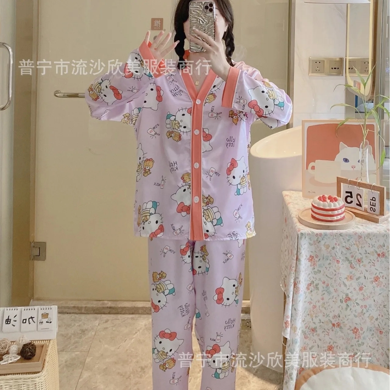 2 reviews for Autumn New Women’s Long-sleeved Pants Cardigan Simulation Silk Loose Lapel Women’s Homewear Pajamas Set Women’s Ice Silk Pajamas
