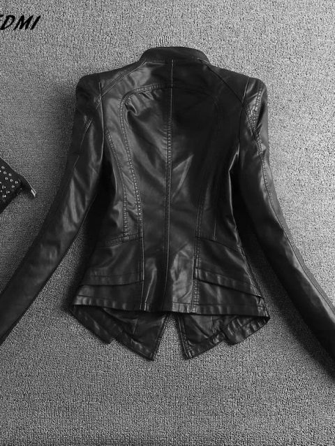 SWREDMI 2024 New Slim Casual Women Leather Jacket Mandarin Collar Short Black Leather Coats Spring And Autumn Suede Outerwear