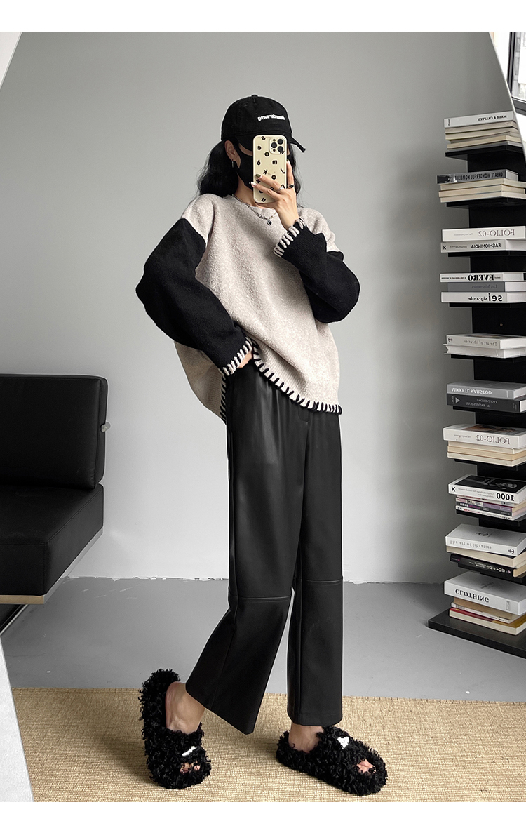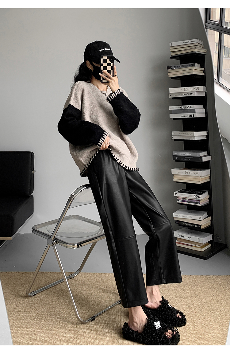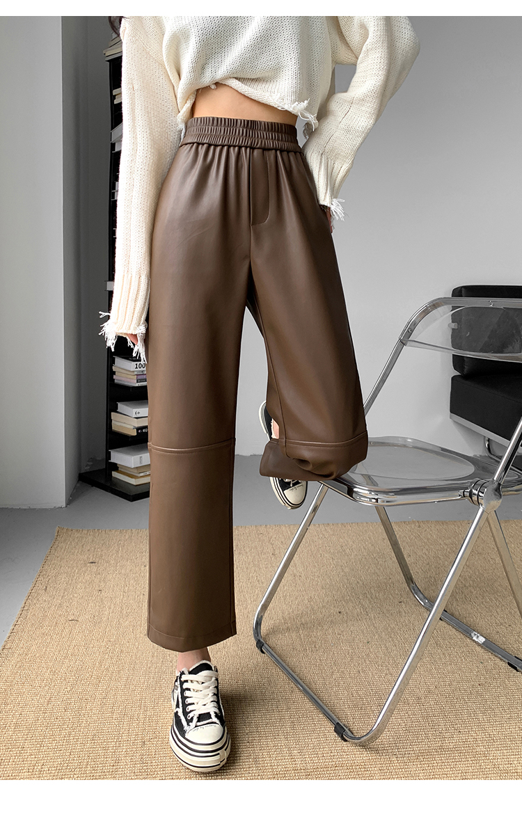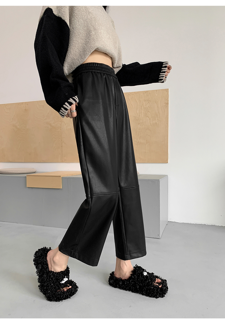 Autumn Winter PU Leather Women’s Ankle Length Pants 2024 New Korean High Waist Black Straight Loose Pants Pocket Female