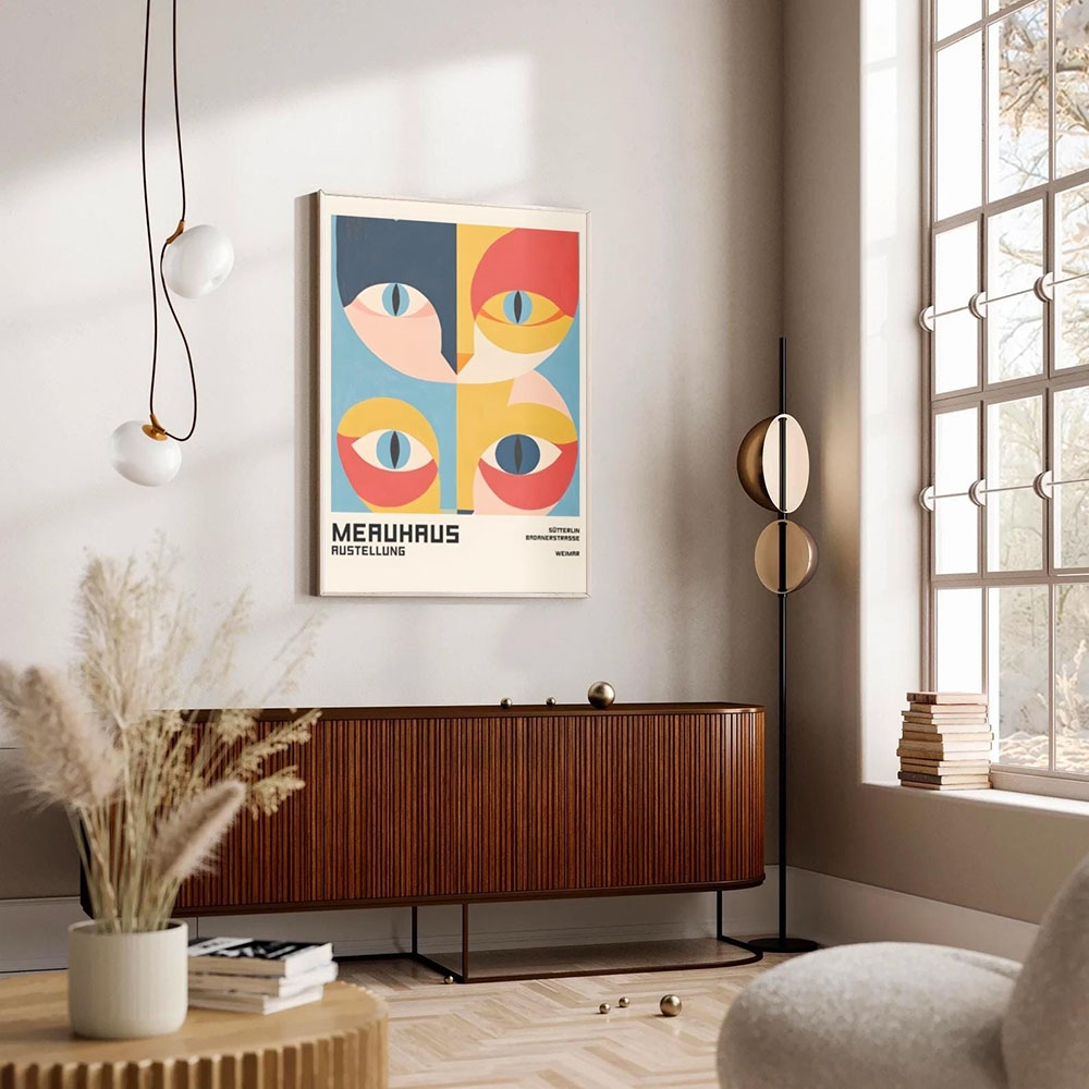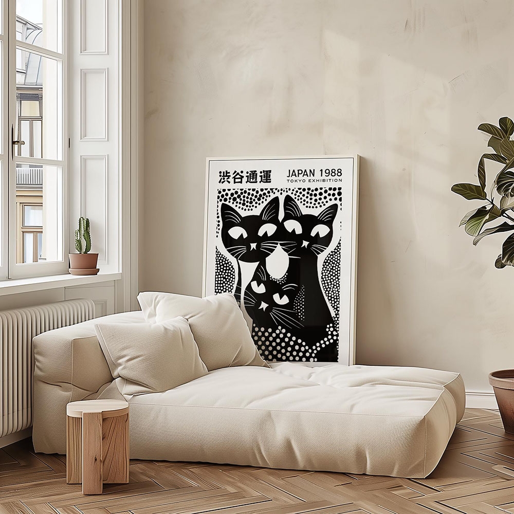 Bauhaus Black and White Cat Pattern Poster Canvas Painting Print Room Home Bar Cafe Decor Room Wall Decor