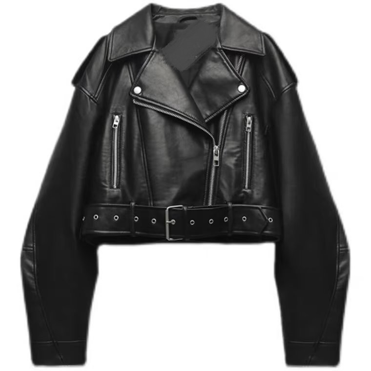 BBWM Women Oversized Vintage Loose Pu Faux Leather Short Jacket with Belt Streetwear Female Zipper Retro Moto Biker Coat Outwear