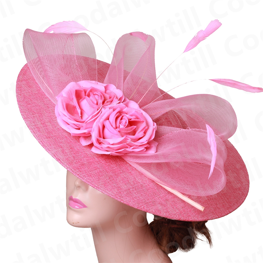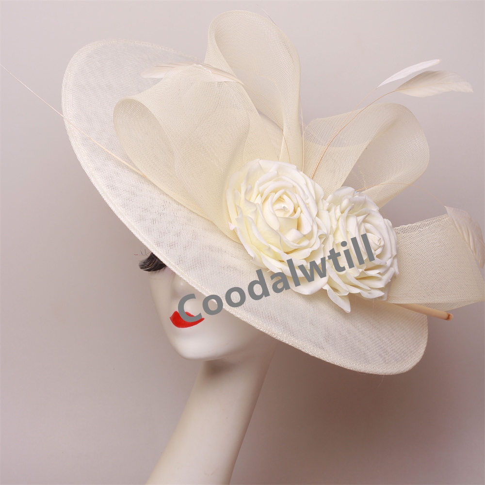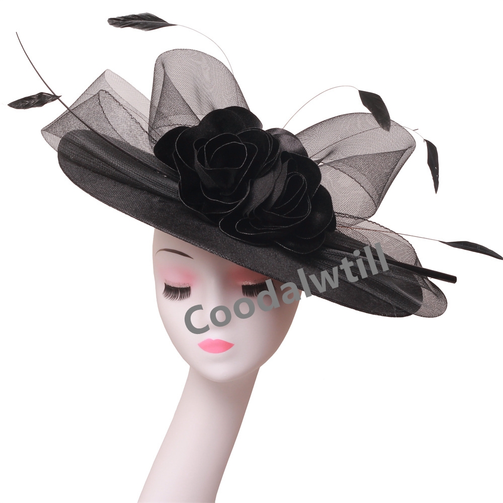 Big Flower Church Fascinator Hat Women Wedding Flower Headpiece Ladies Church Party Chapeau Cap Feather Fascinator Derby Hats