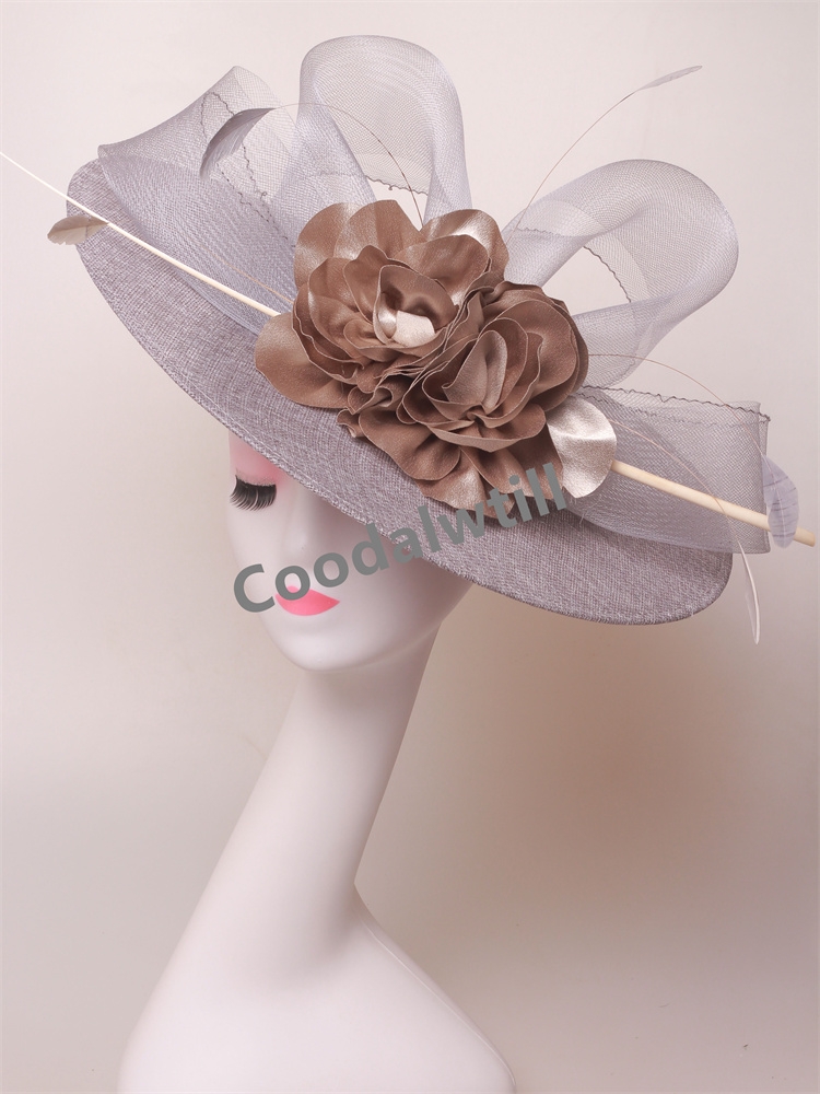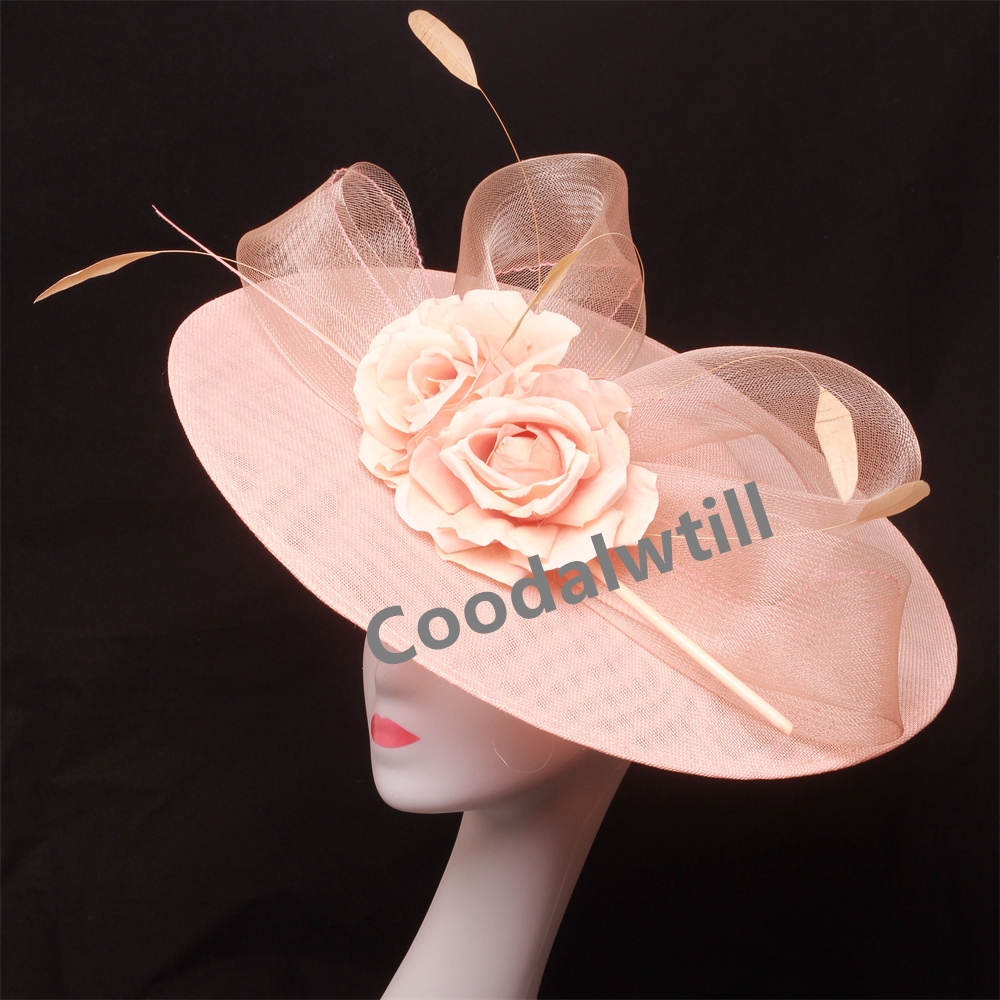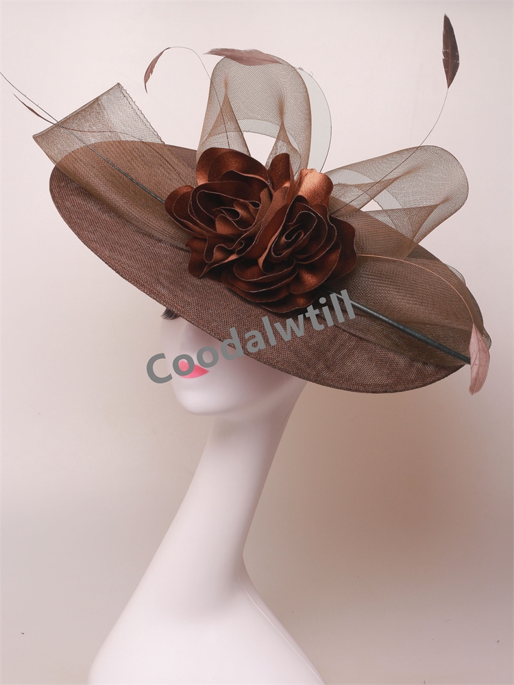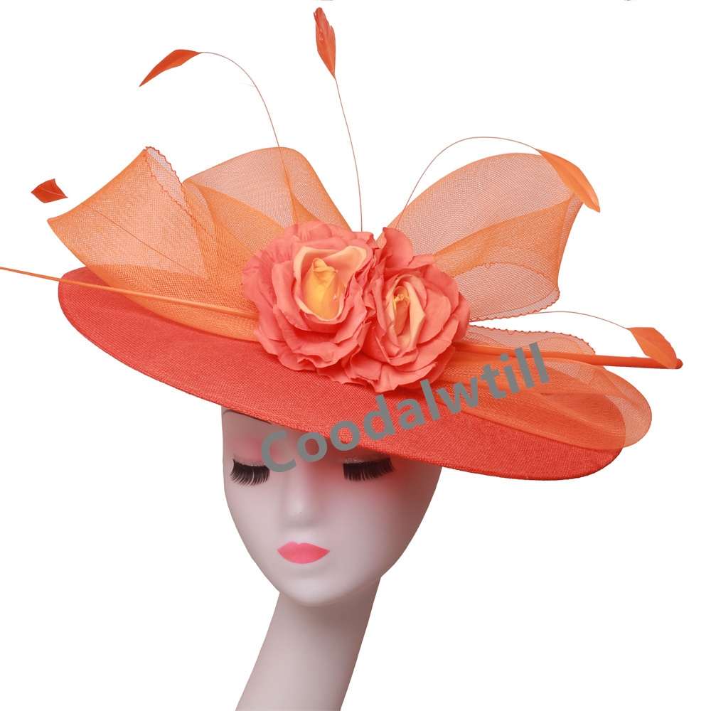 Big Flower Church Fascinator Hat Women Wedding Flower Headpiece Ladies Church Party Chapeau Cap Feather Fascinator Derby Hats