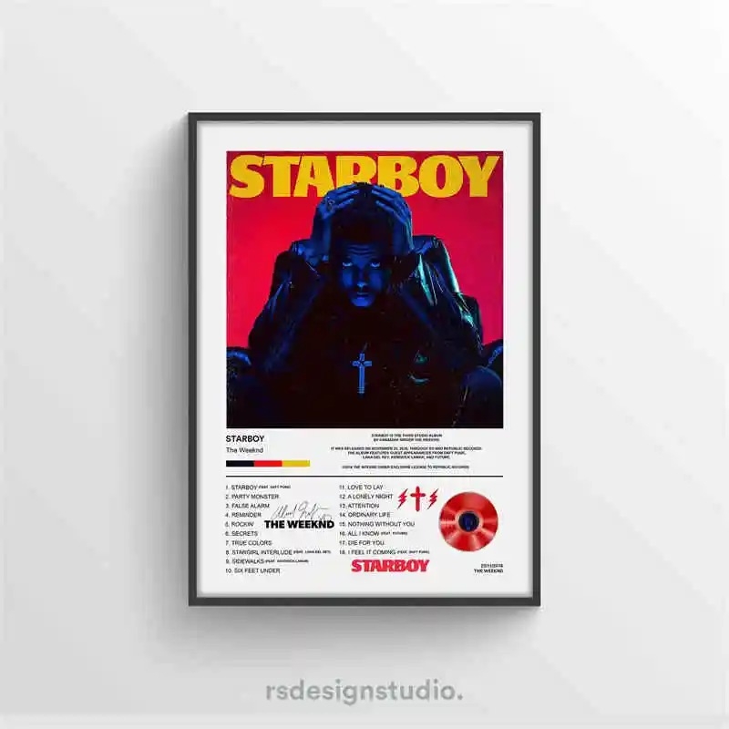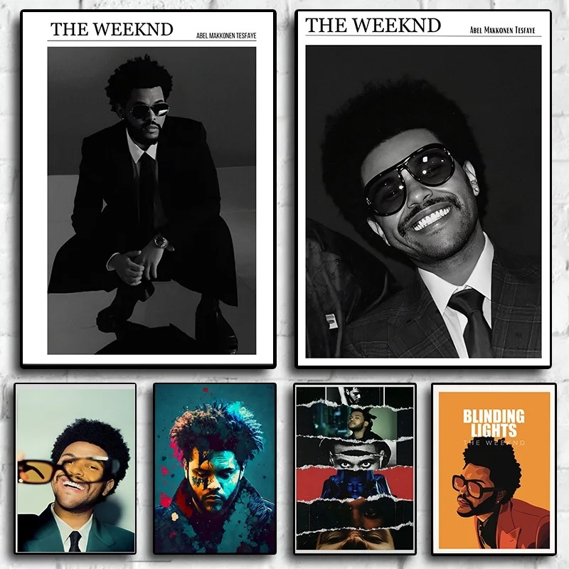 Black and White Rapper The Weeknd Poster Aesthetics Set Hip Hop Music Album Starboy Kiss Land Canvas Print Wall Art Room Decor