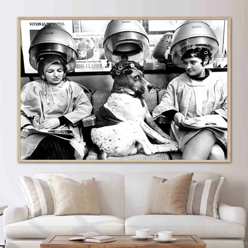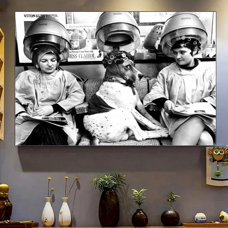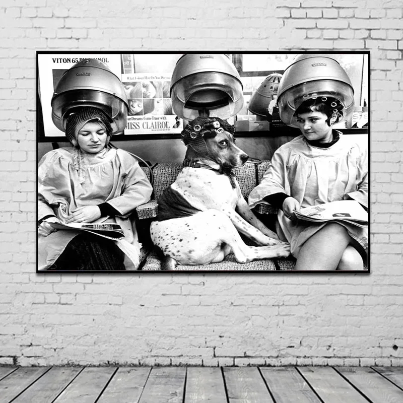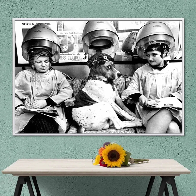 Be the first to review “Black And White Vintage Europe Beauty Salon Poster Prints Funny Dog With Curlers At The Hairdresser Canvas Painting Wall Art”