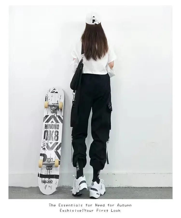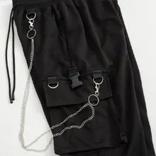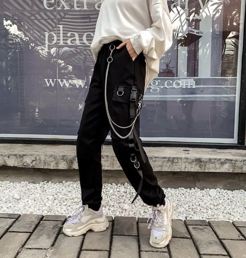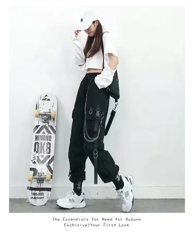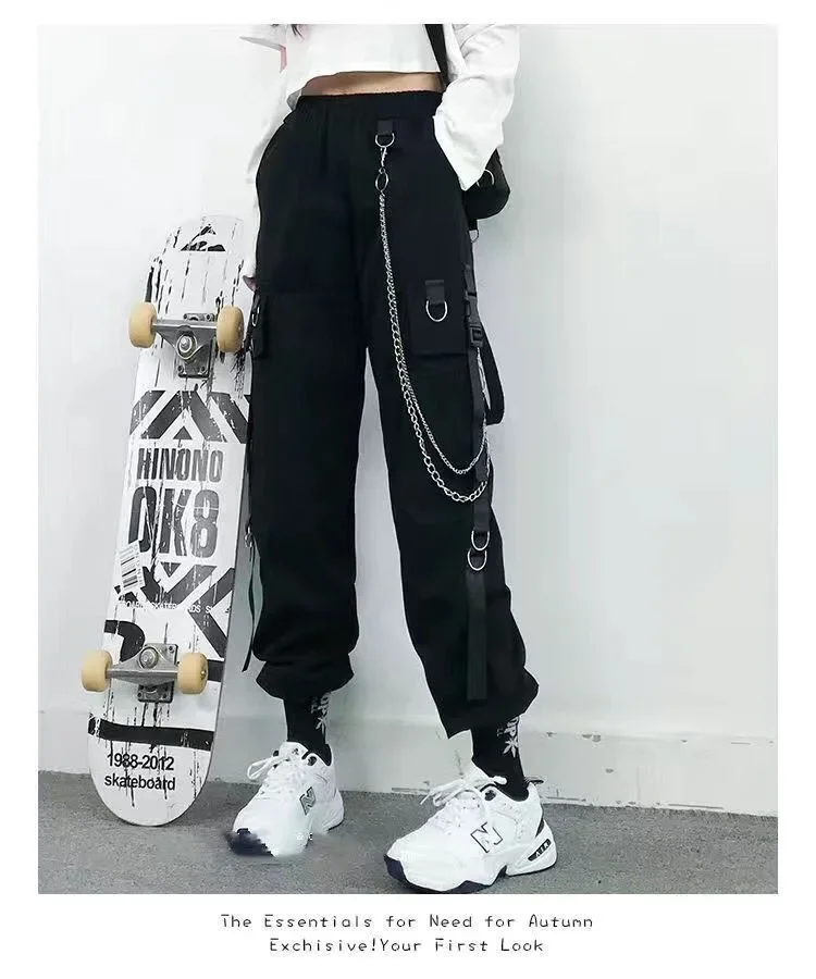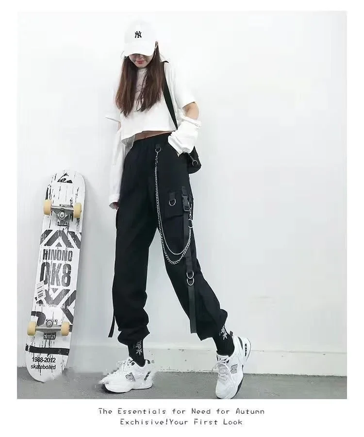 Black Cargo Pants for Women Techwear Women Loose Street Rock Style Casual Black Pants with Chain Goth Pants
