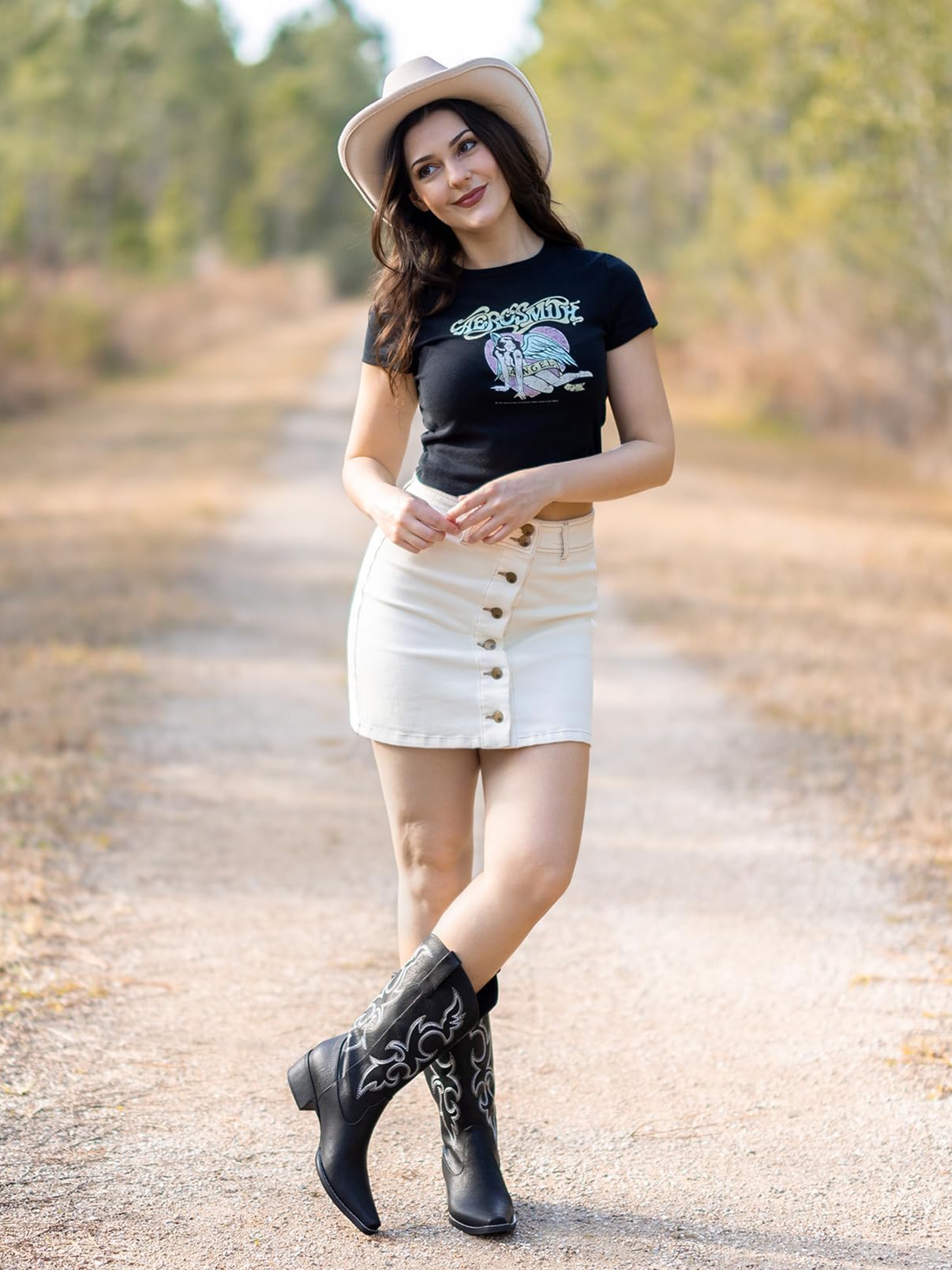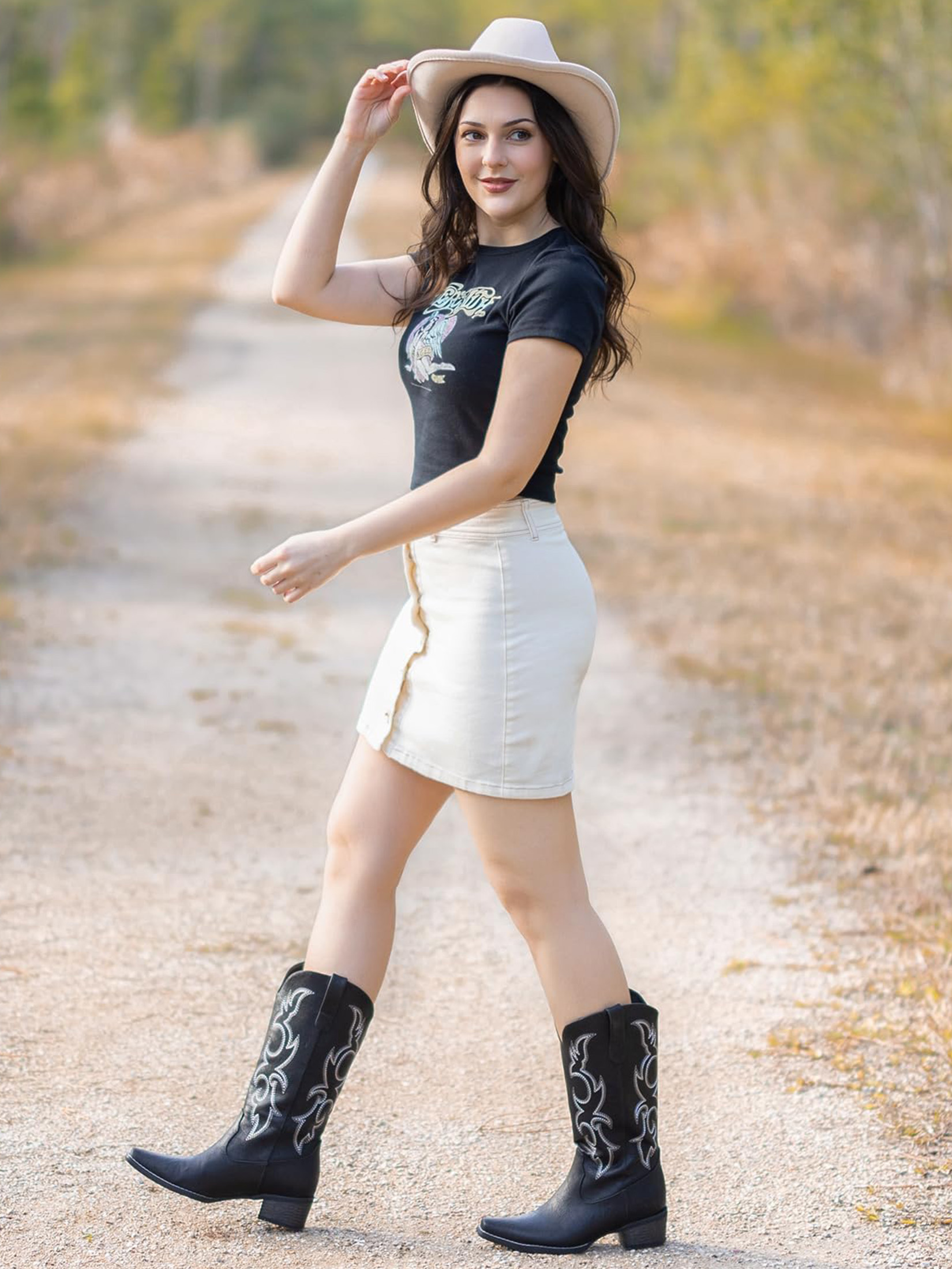 Black Cowboy Boots for Women – Embroidered Cowgirl Boots Western Mid Calf Fashion Chunky Heel Pointed Toe Country Boots