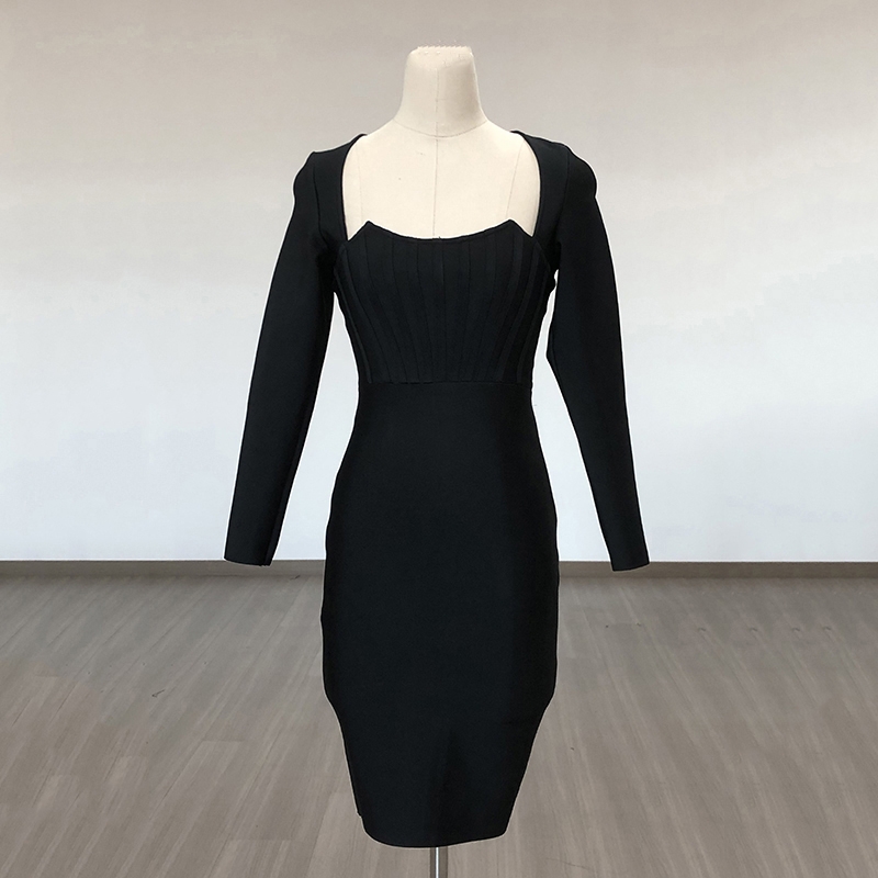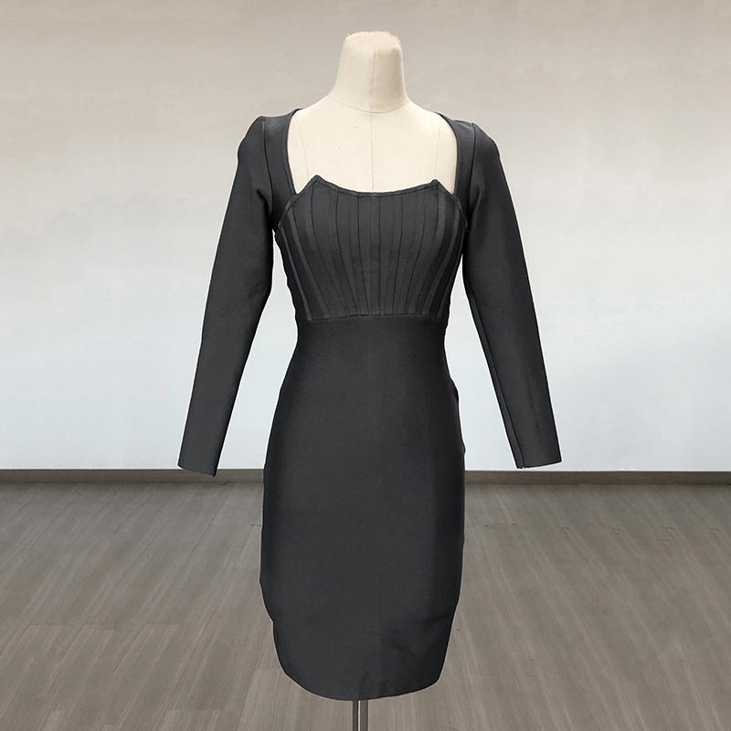 Black Grey Rayon Bandage Dress for Women 2023 New Long Sleeve Cocktail Party Dress Elegant Bodycon Vestidos High Quality BA186