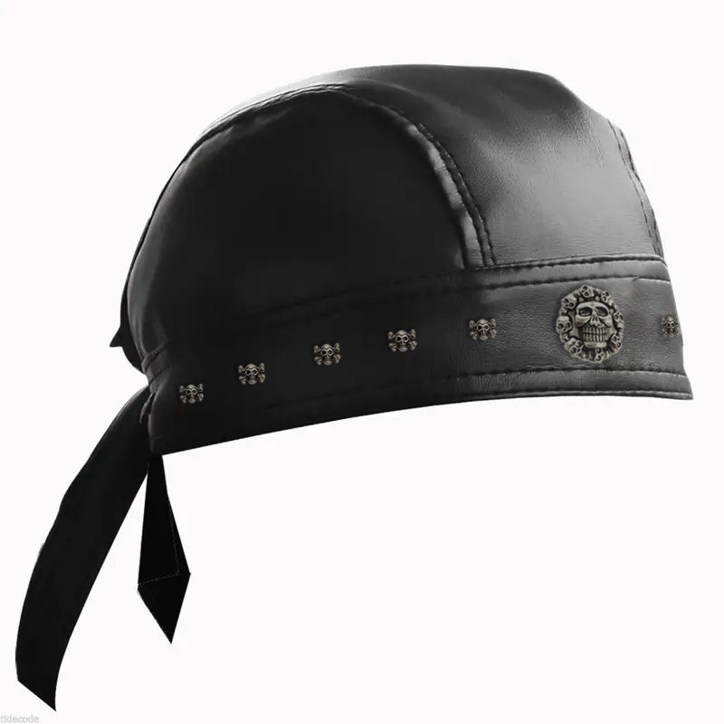 Black Leather Skull Bandana Motorcycle Helmet – Edgy Halloween Gift for Urban Biker Cosplay