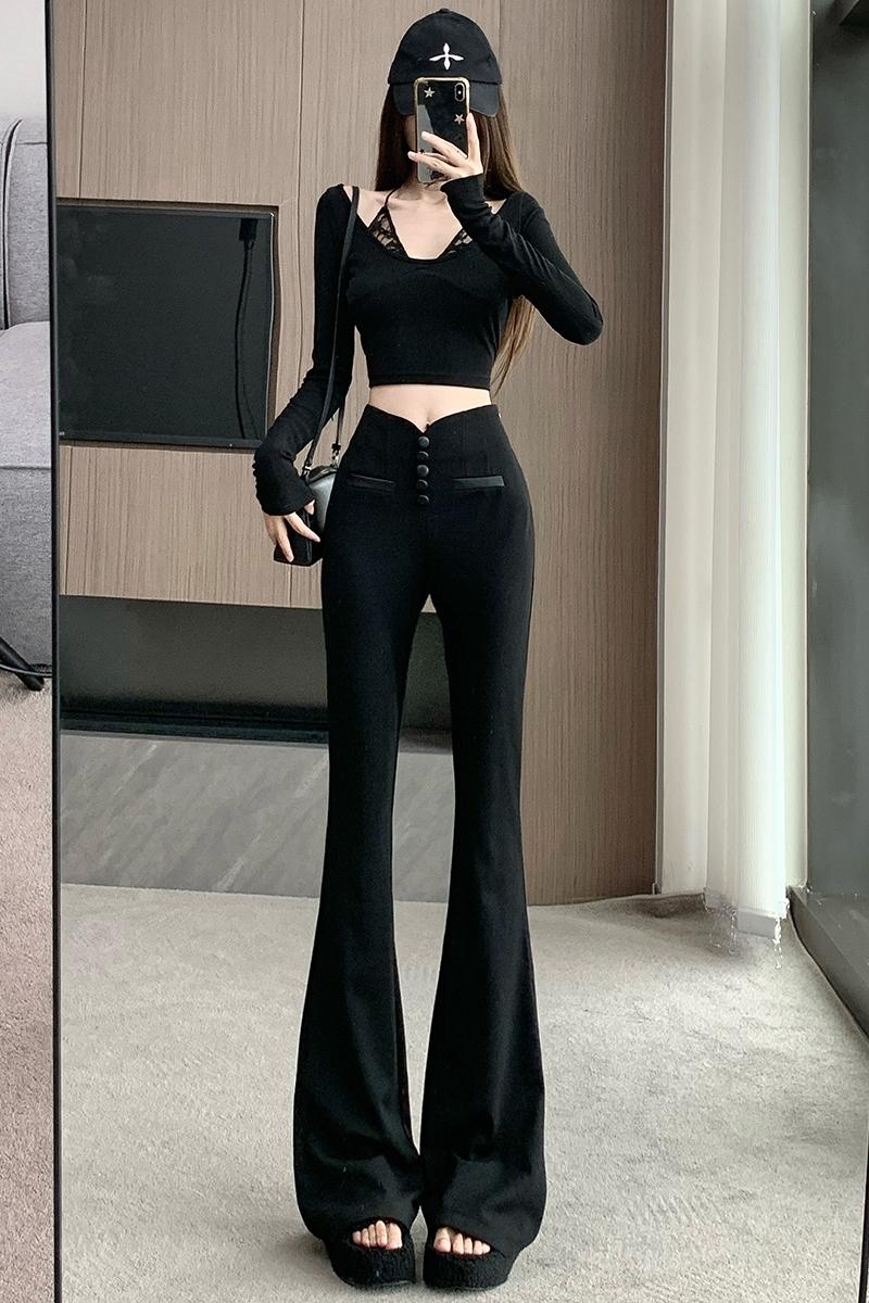 Black suit pants, women’s autumn high waisted flared pants, slim fit and slimming, with a sense of sagging, floor length pants