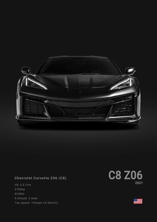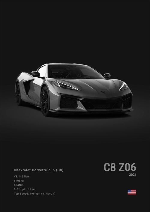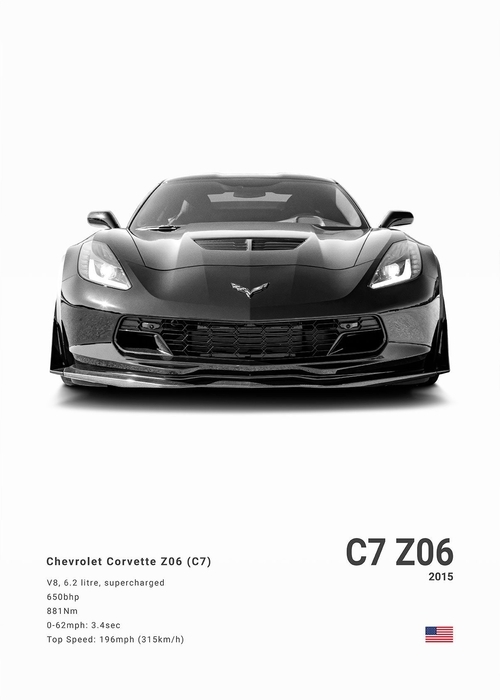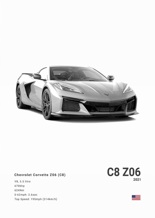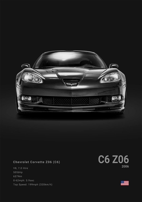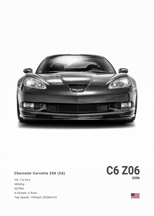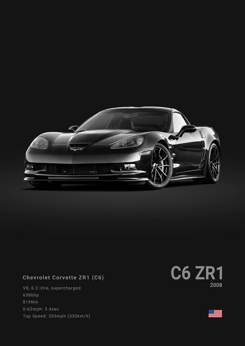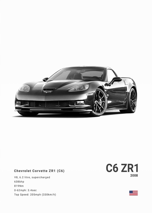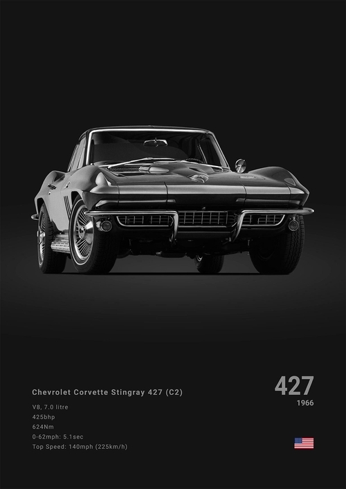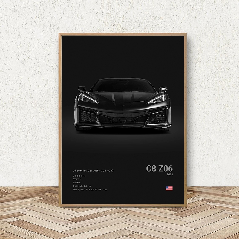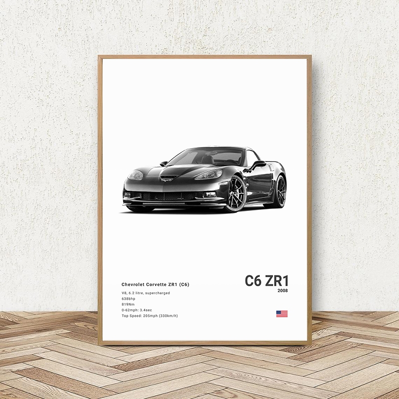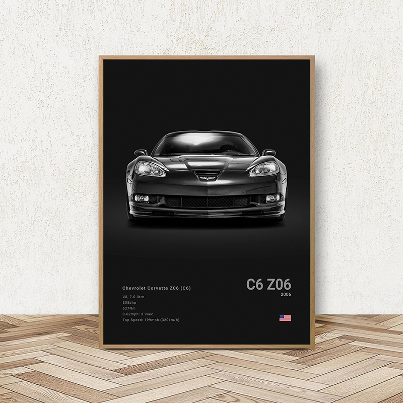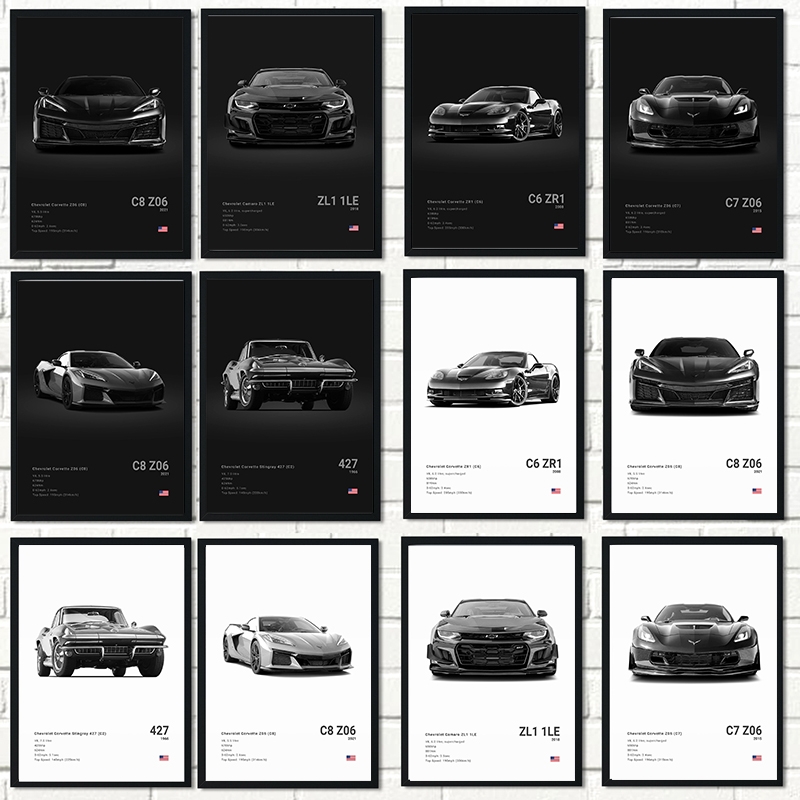 Black White Background Sports Cars Poster and Prints C6 C7 C8 427 Luxury Car Canvas Painting Wall Art Pictures Room Office