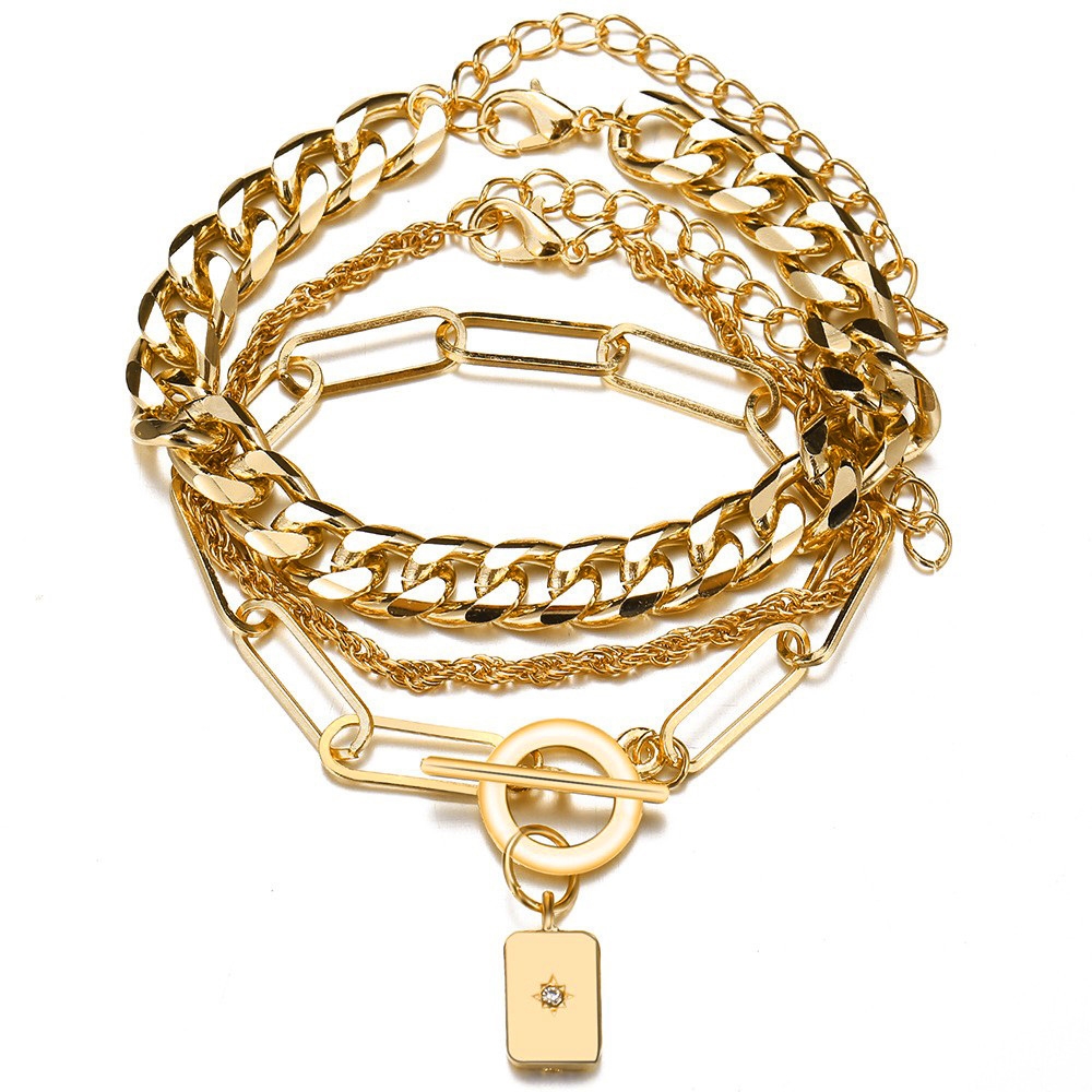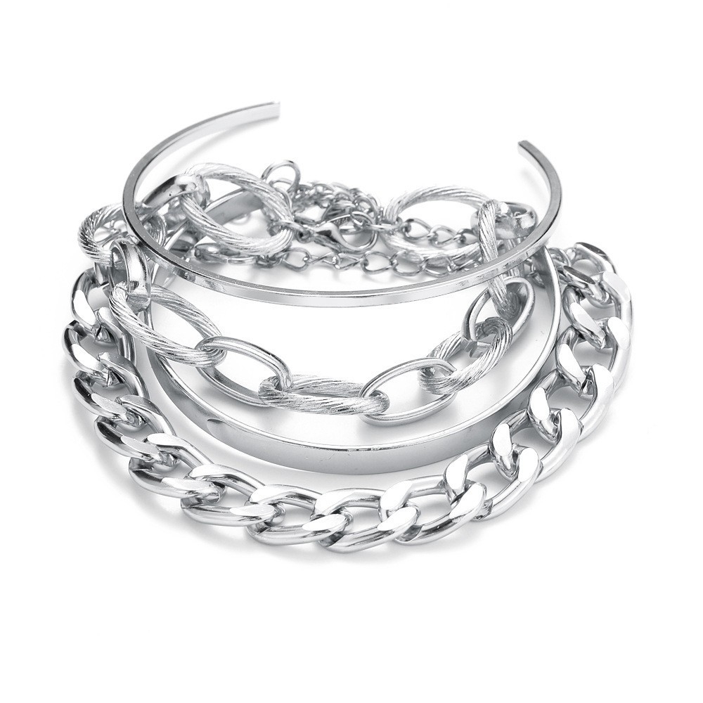 3 reviews for Bohemian Metal Chain Bracelet Set For Women Geometric Gold Color Thick Link Chain Open Bangle Female Fashion Jewelry