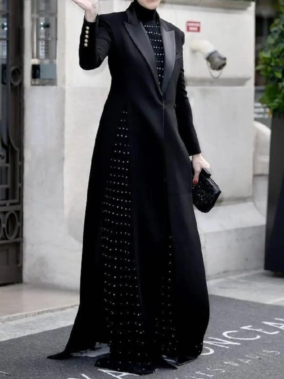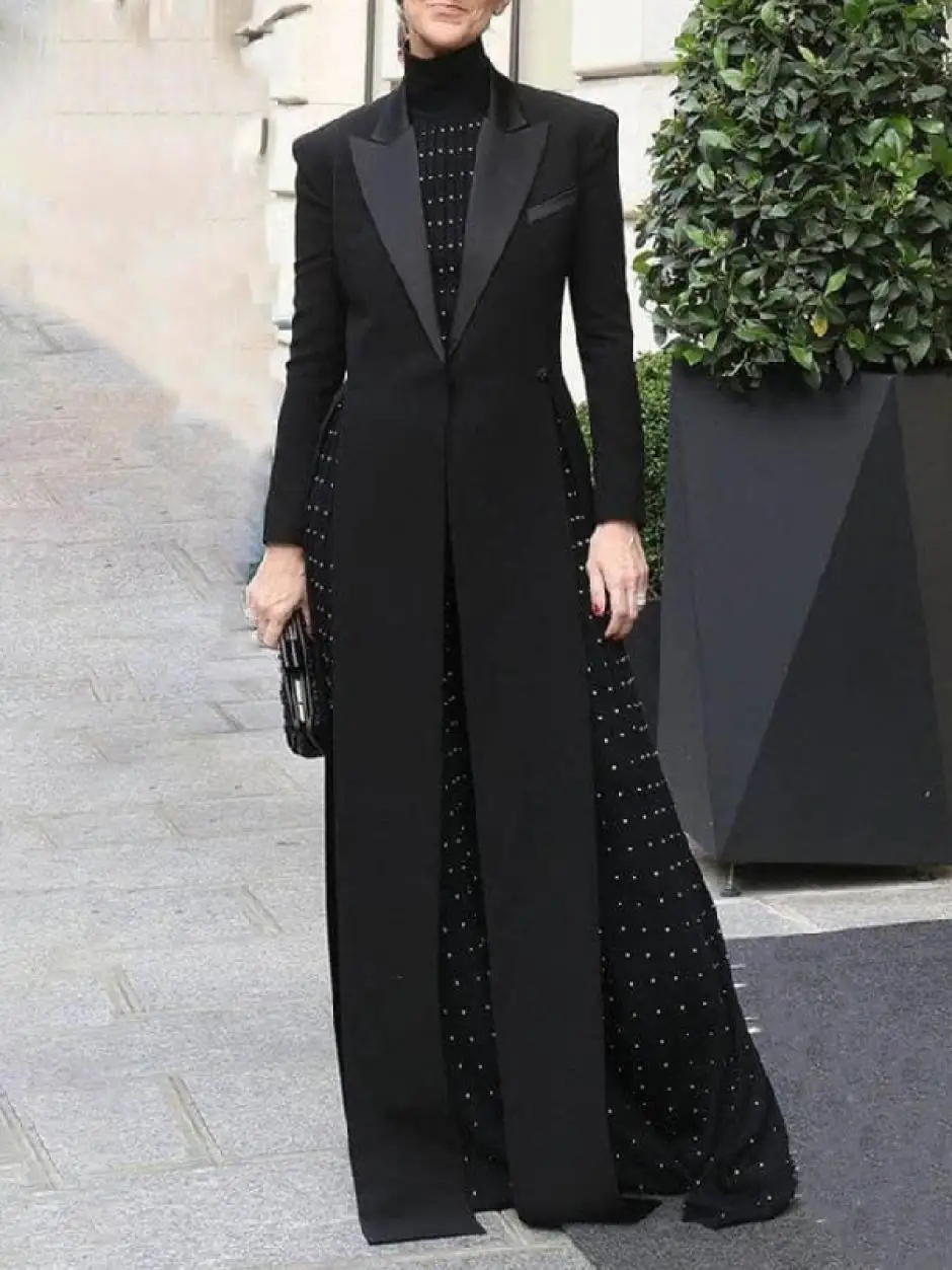 Bonboho 2024 Women’s Elegant Blazer Jacket Solid Black Slim Long Sleeve Extra-Long Splited Blazer Coat Female Formal Outerwear