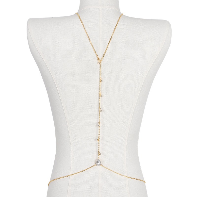Bride Backless Rhinestone Waterdrop Body Chain Belly Waist Necklace for Women Mom Girlfriend Summer Beach Body Jewelry