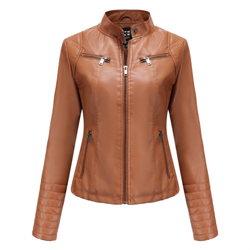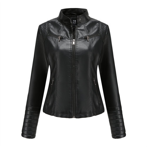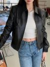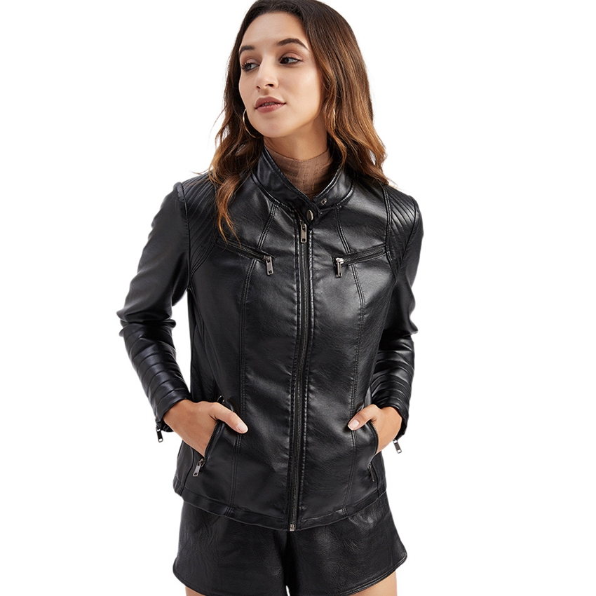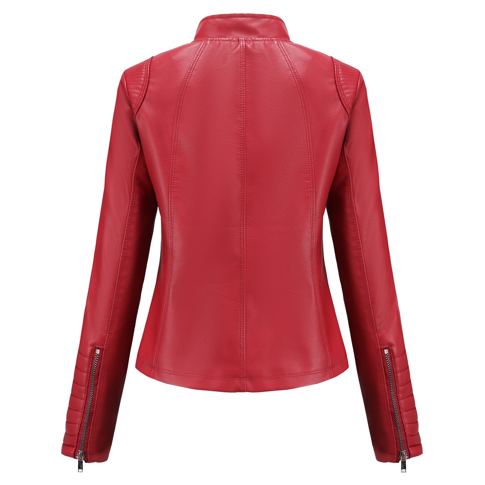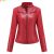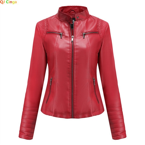 Bright Red V-neck Leather Jacket Women’s, Fashion Slim PU Coat, Black Short Outerwear Asia Size XS S M L XL XXL