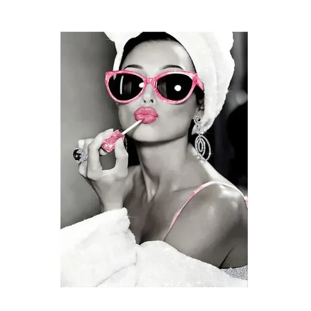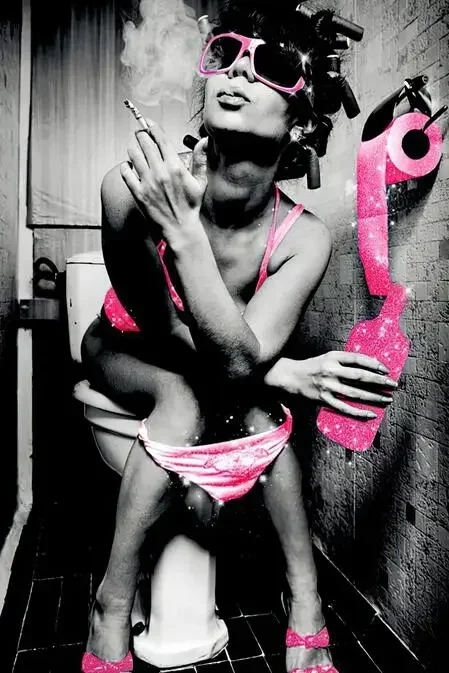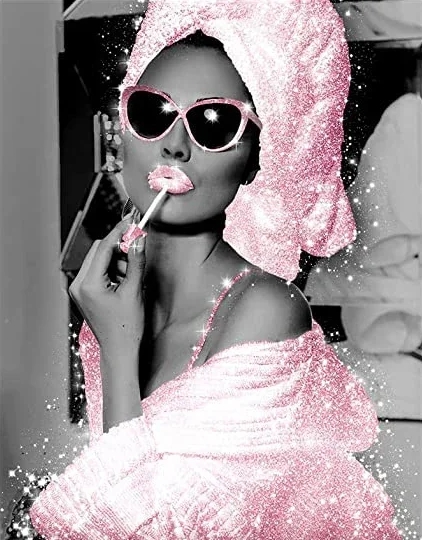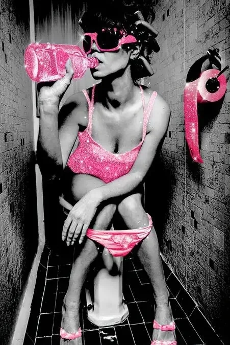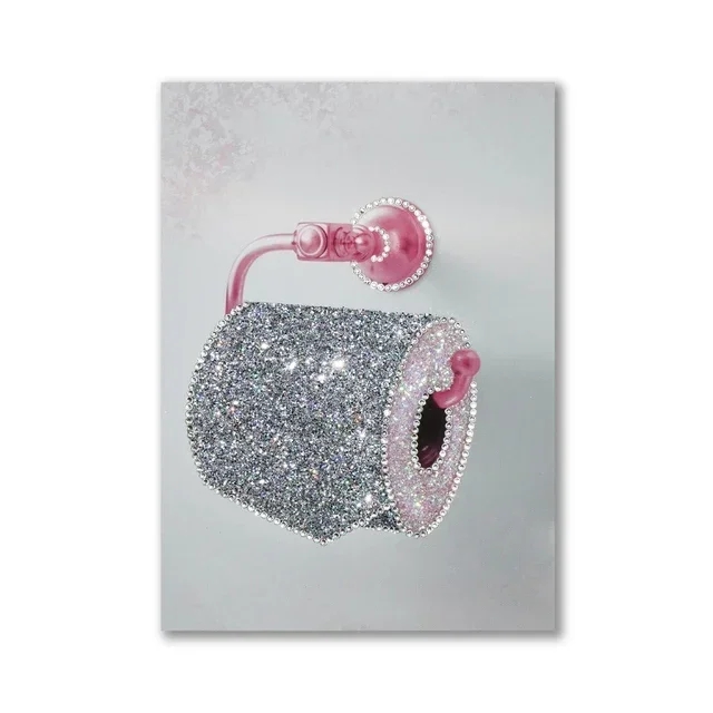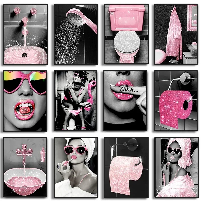 Canvas Painting Sexy Woman Fashion WC Toilet Wall Art Poster Pink Glitter Bling Roll Paper Bathroom Prints Pictures Decorative