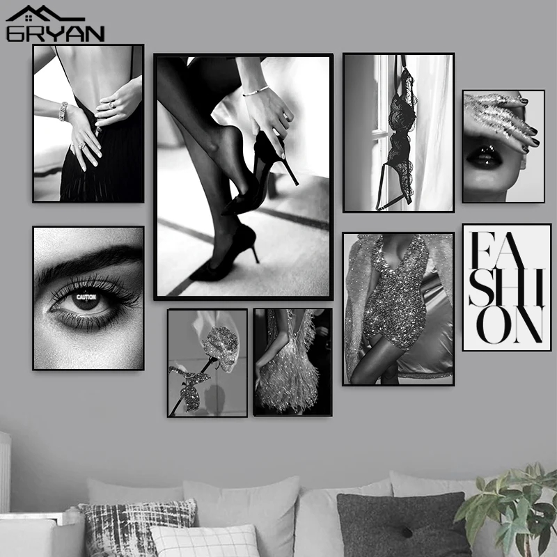 Black and White Fashion Wall Art Poster Woman Sexy Legs Canvas Painting Prints Picture Unique Home Room Bathroom Decor Painting