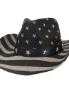 Vintage Star Stripe Print Straw Cowgirl Hat for Women Men Bull Head Belt Wide Brim Western Caps for 4th of July Panama Jazz Hat