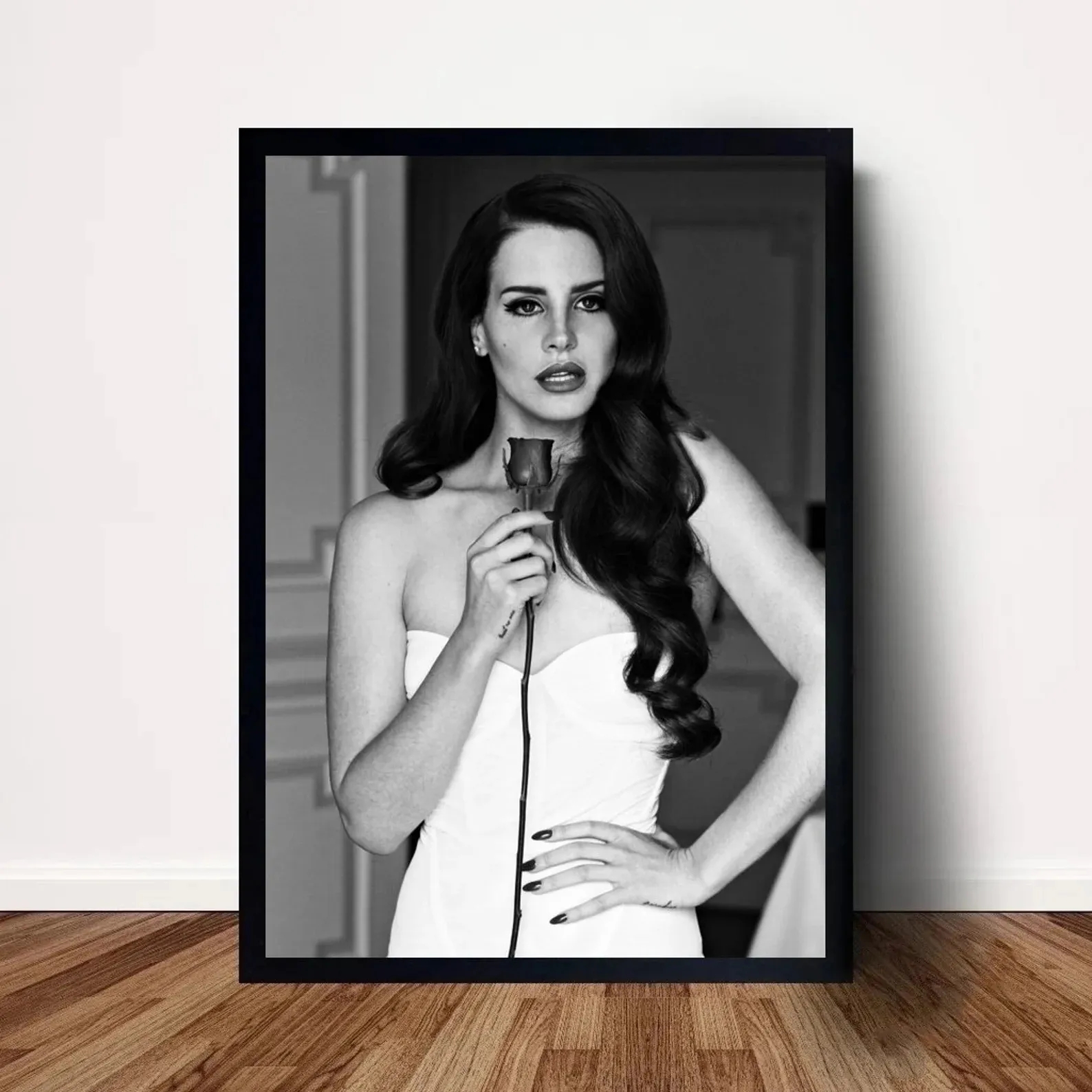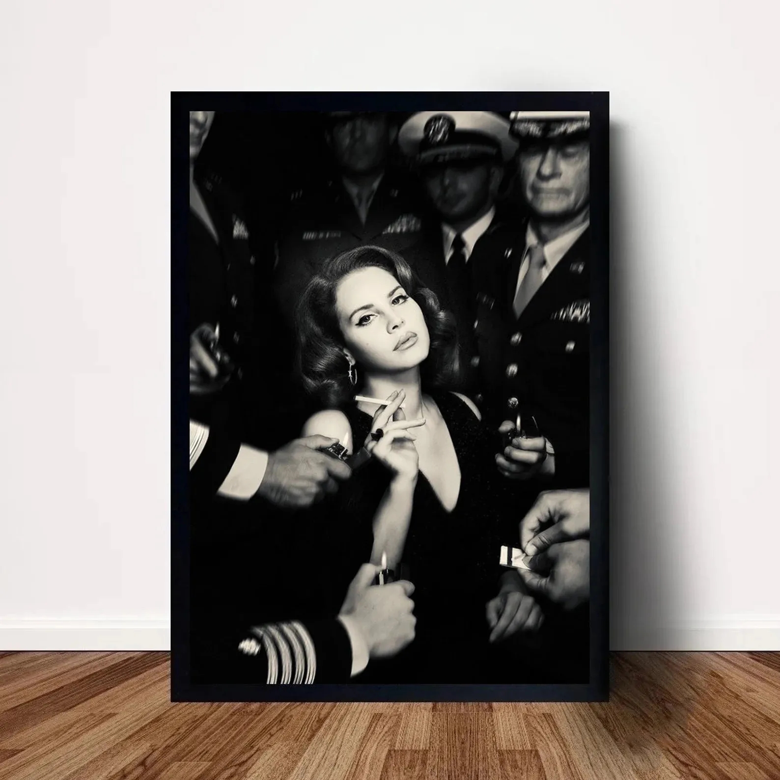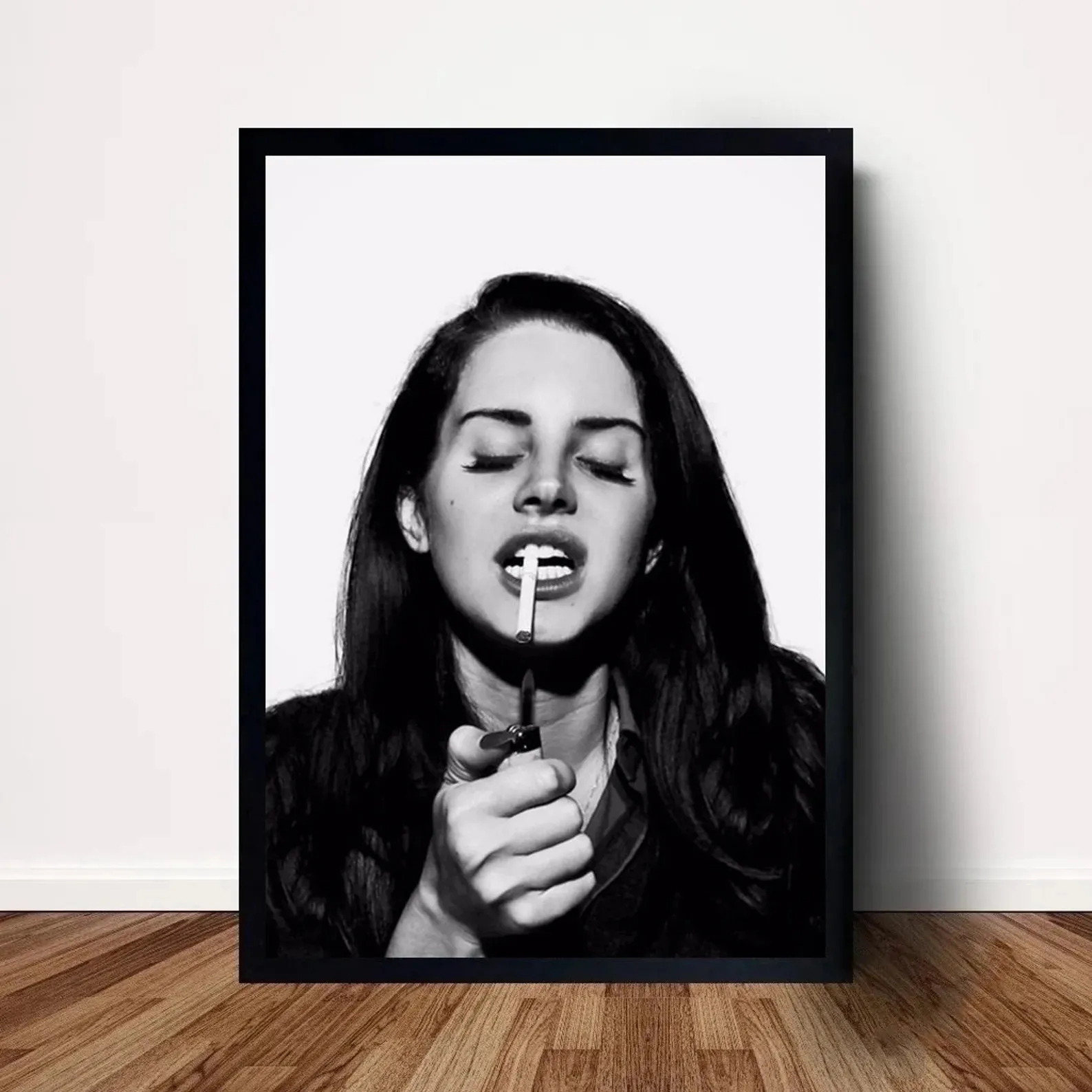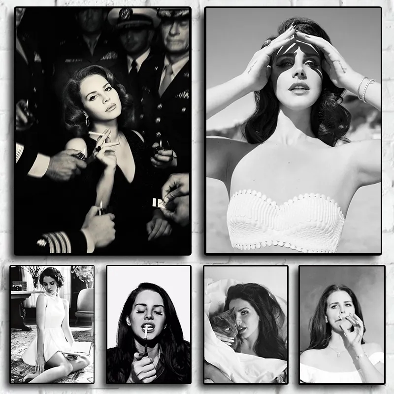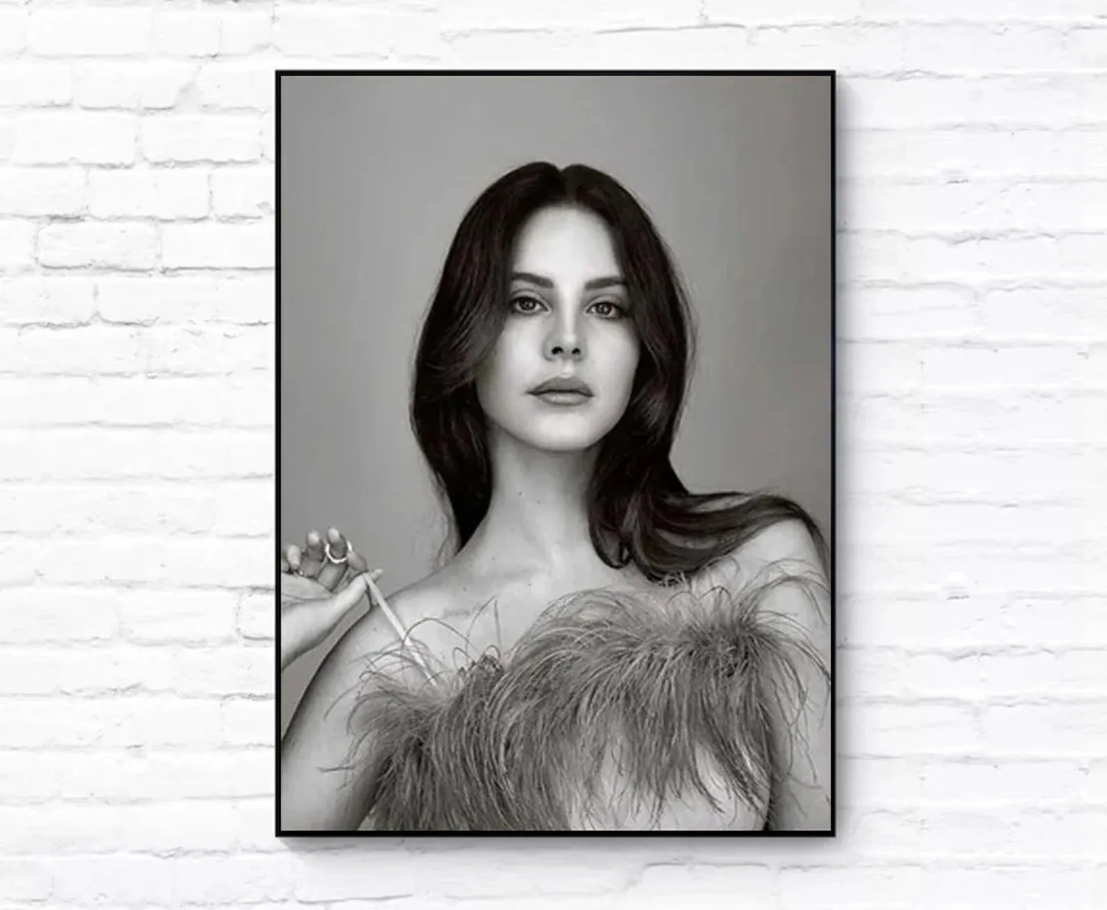 Character Portrait Aesthetic Wall Art Lana Del Rey Music Singer Black and White HD Oil on Canvas Posters and Prints Home Decor