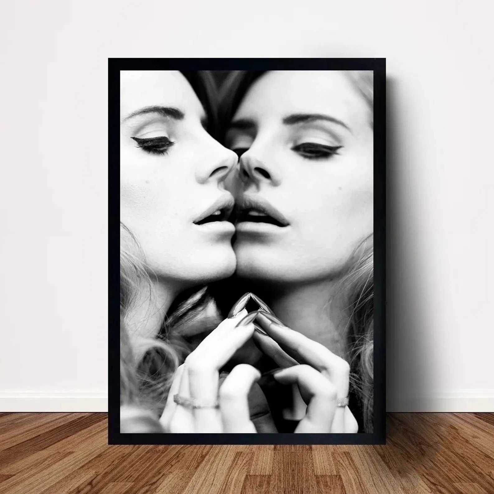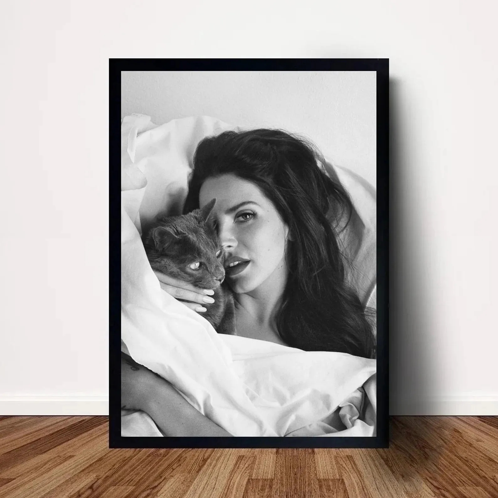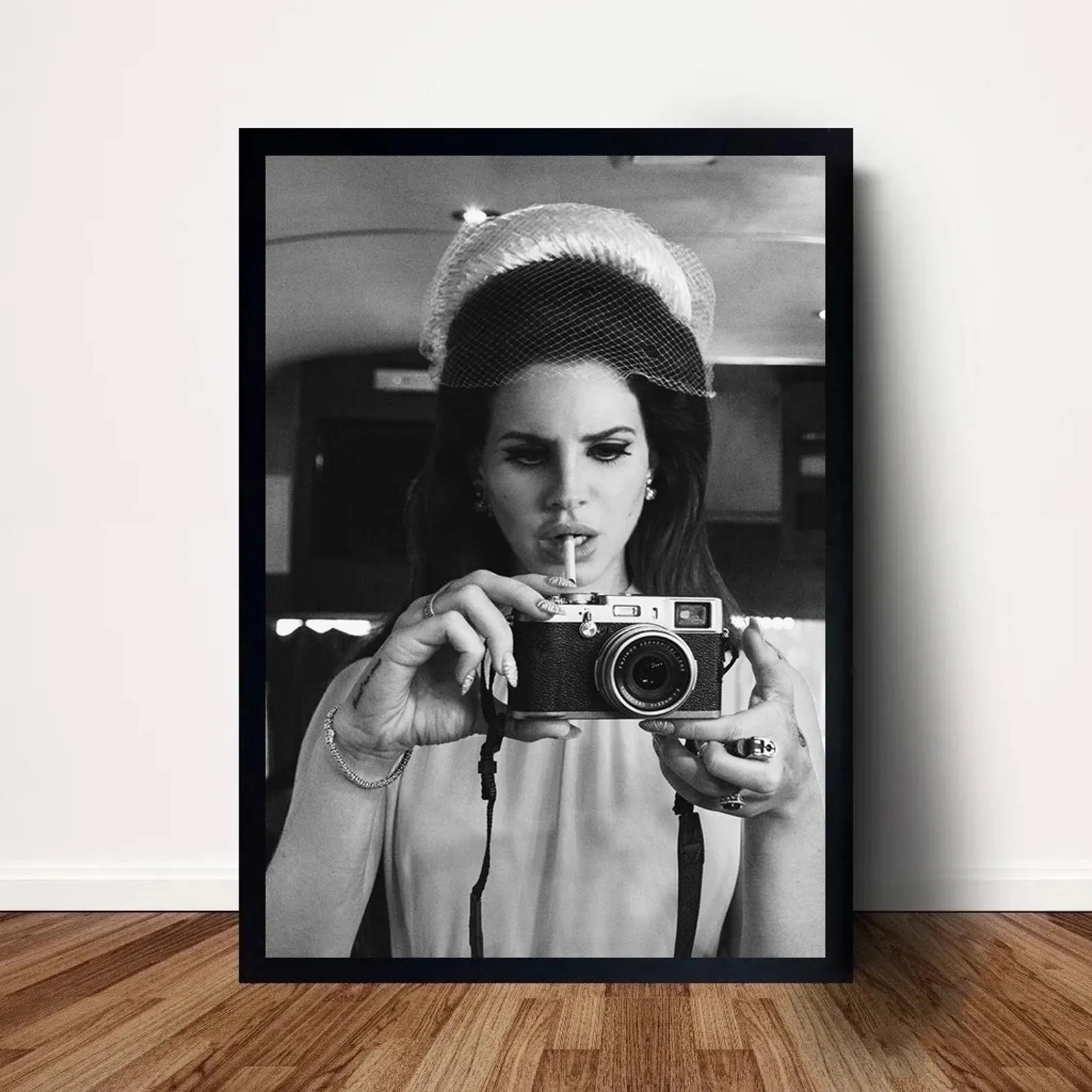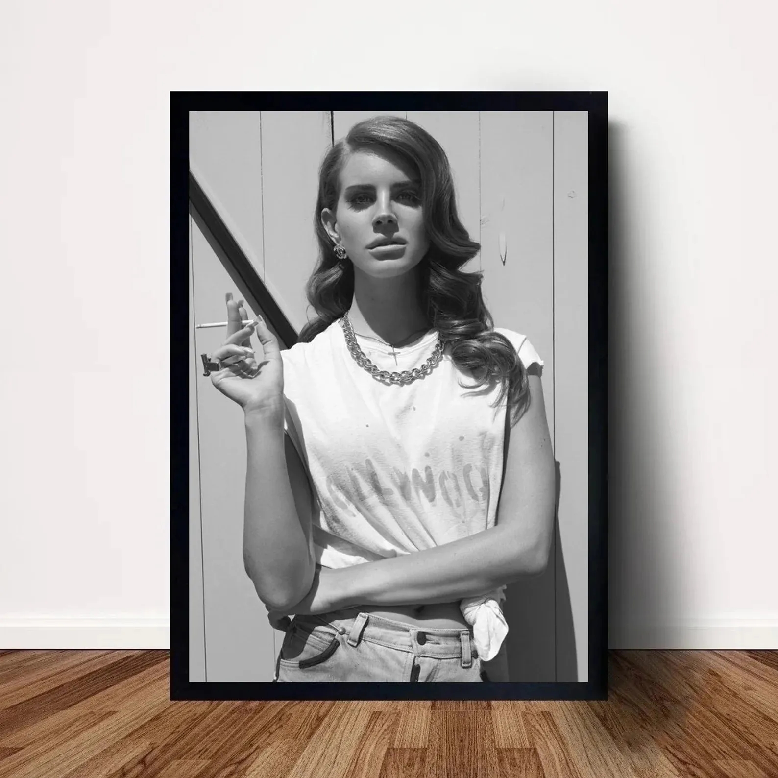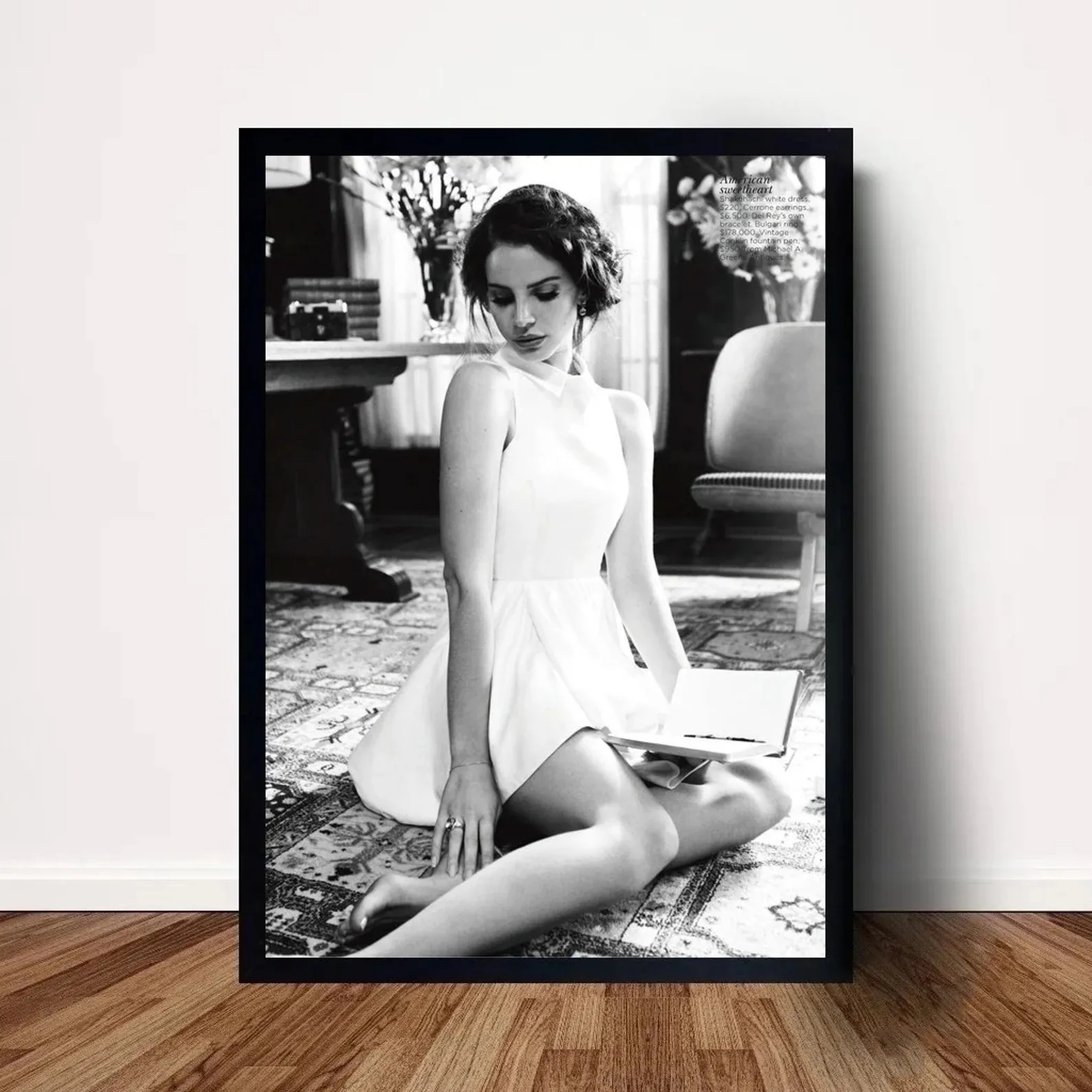 Character Portrait Aesthetic Wall Art Lana Del Rey Music Singer Black and White HD Oil on Canvas Posters and Prints Home Decor