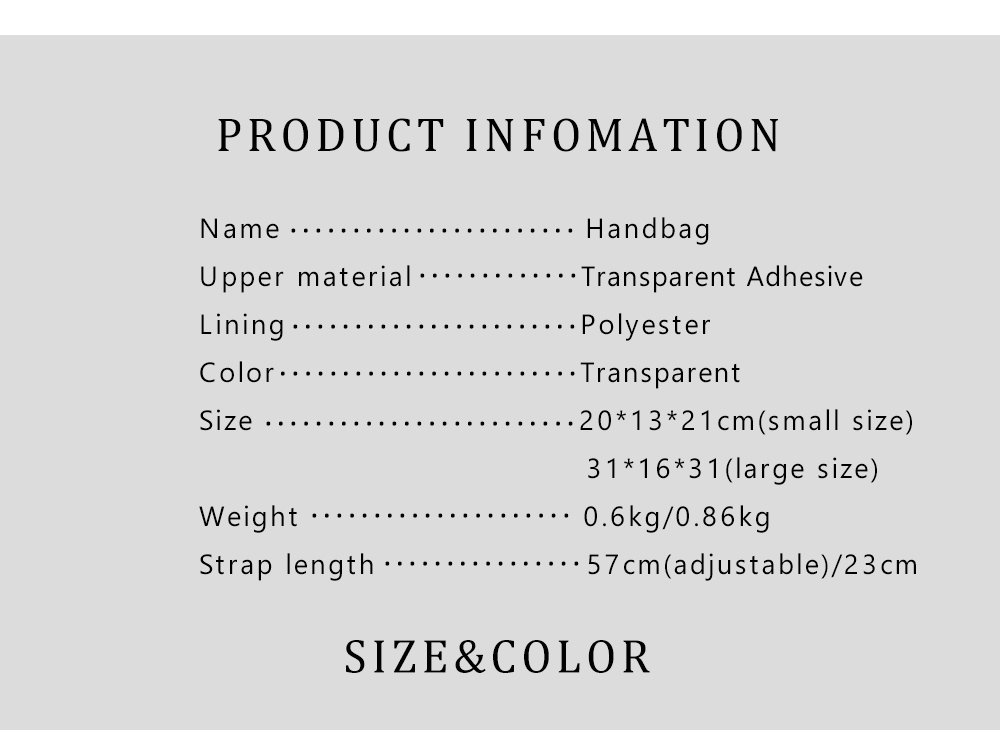 CHCH Fashion Classic Simple Style Women’s New Handbag Large Capacity Transparent Color Shopping and Shopping Women’s Handbag