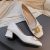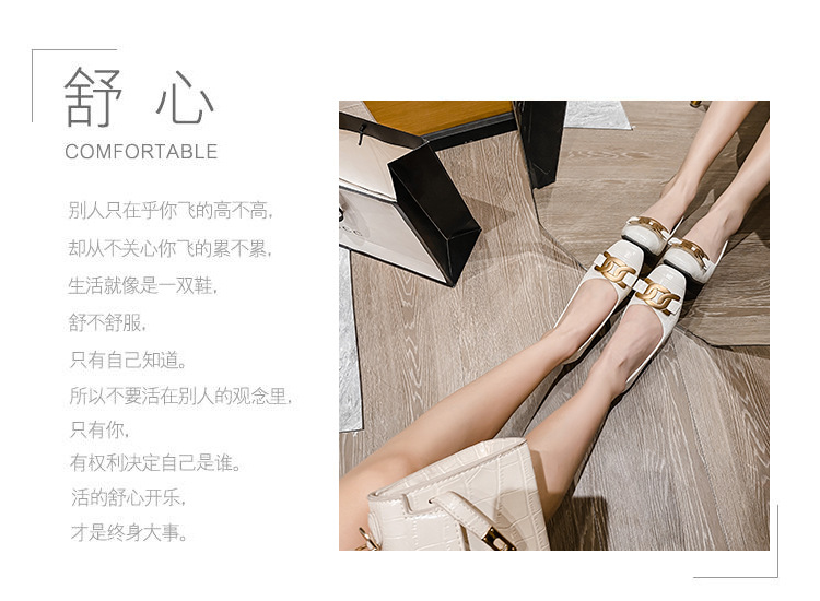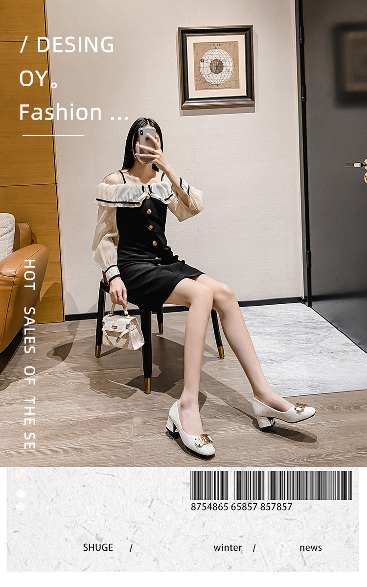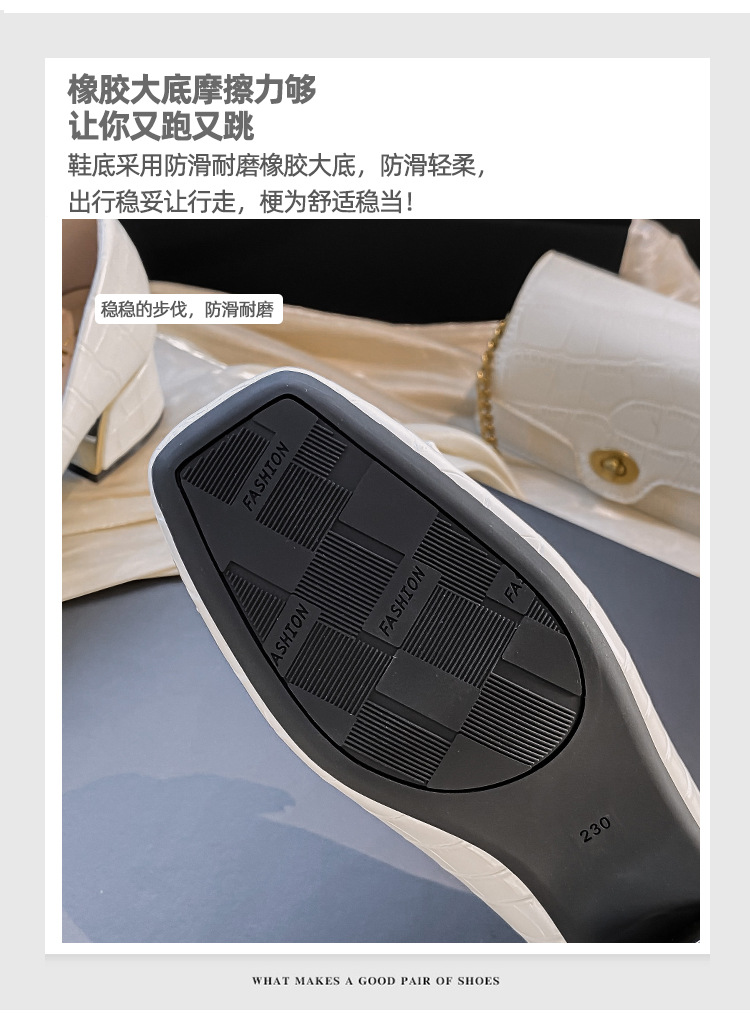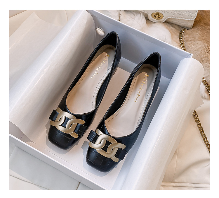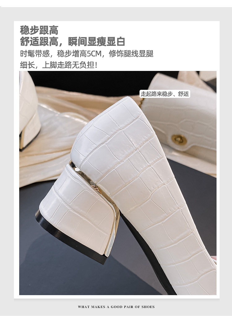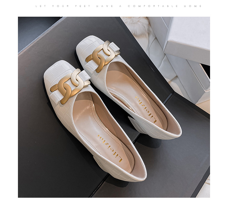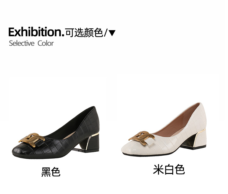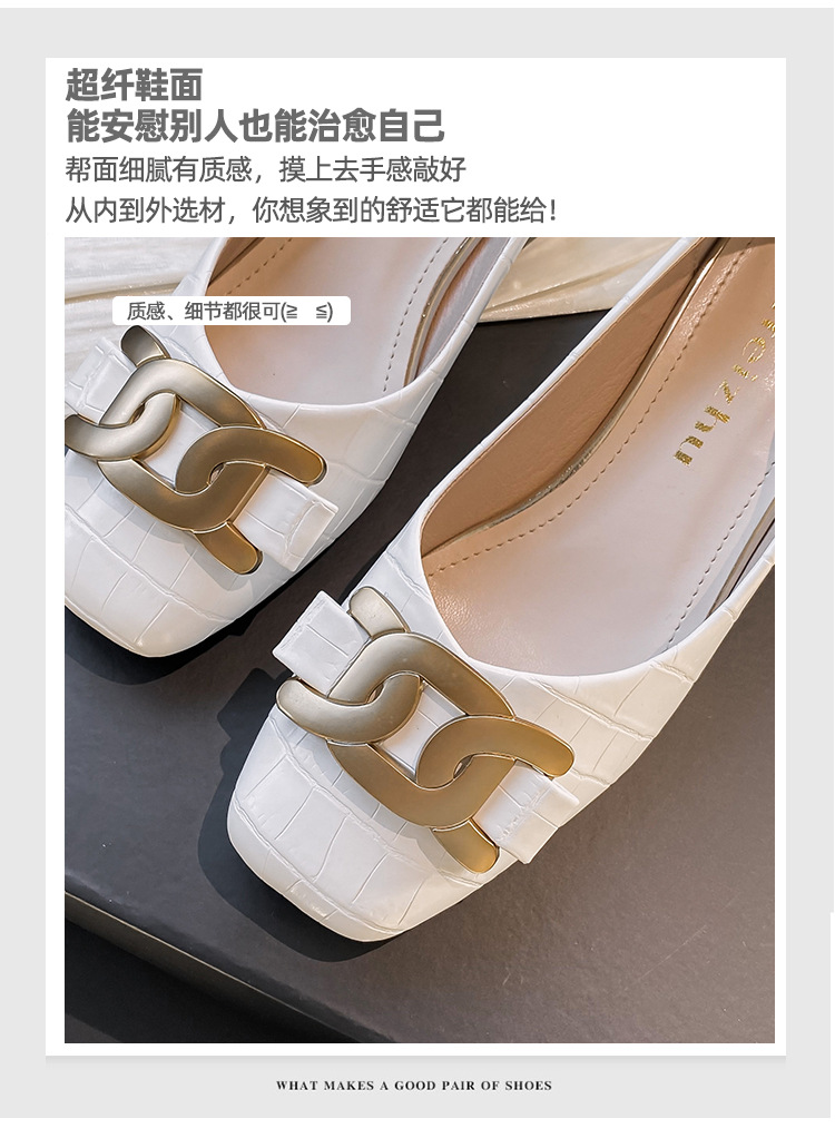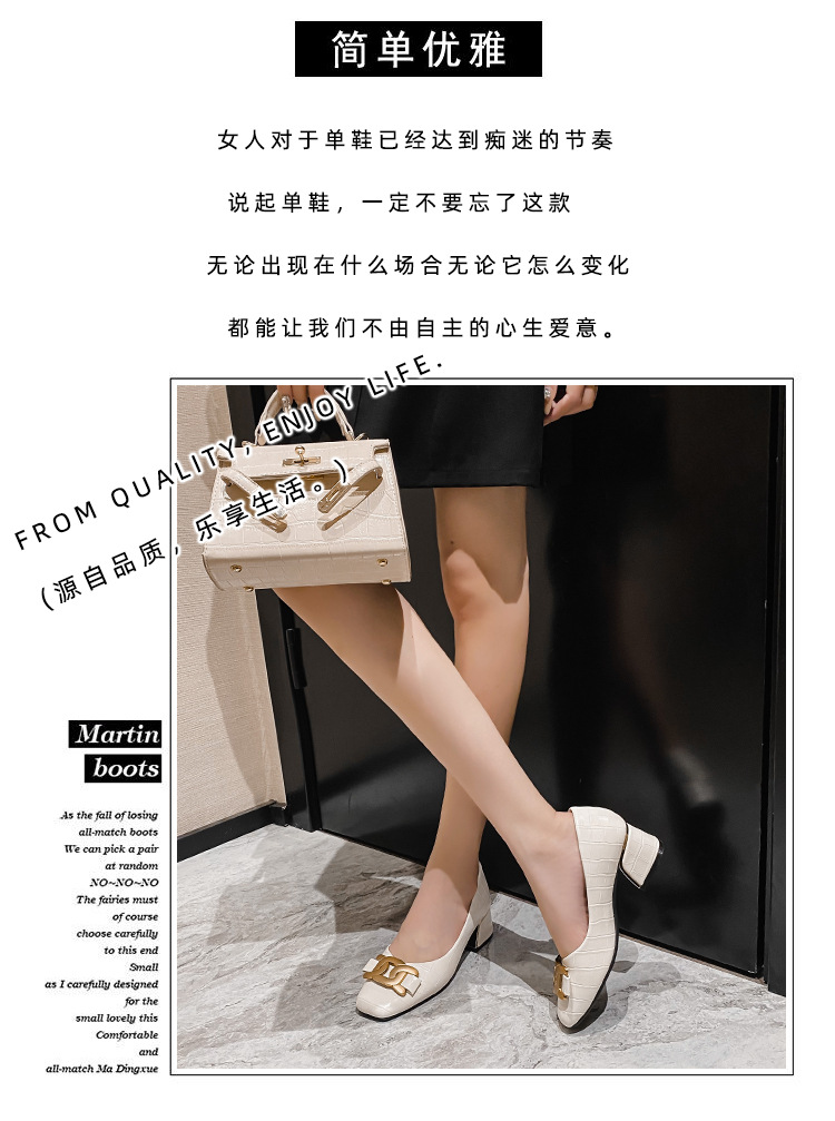 Chunky Med-High Heels Shoes Woman Luxury Metal Chain Pumps Alligator Mary Janes Ladies Dress Square Toe Tacones Mujer Escarpins