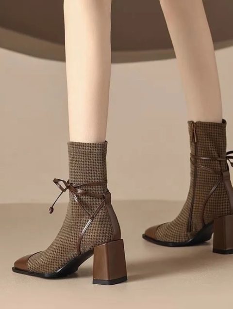 Shoes for Women 2023 New Square Toe Ladies High Heels Comfortable Thick Heel Office Female Shoes Fashion Women’s Ankle Boots