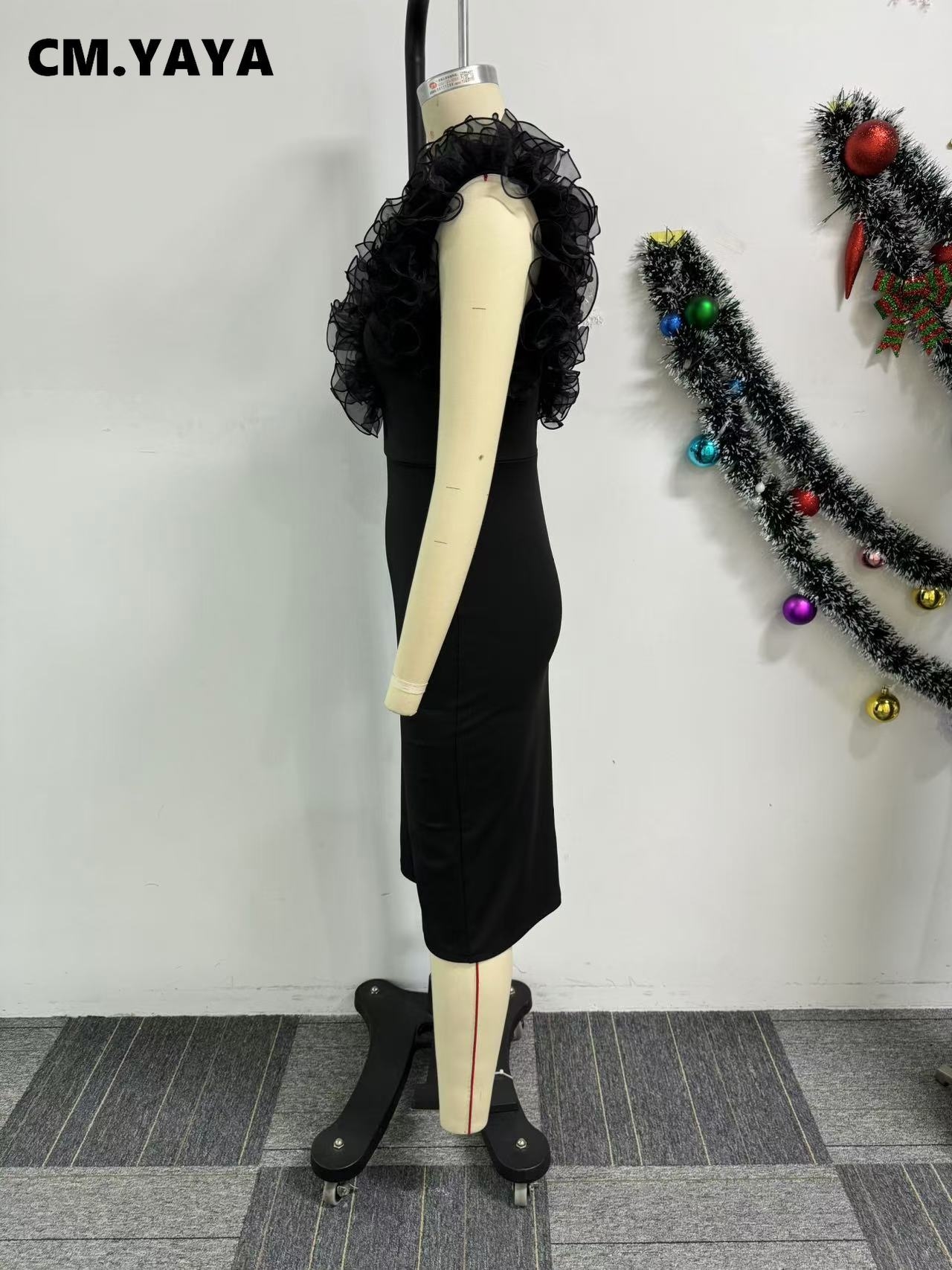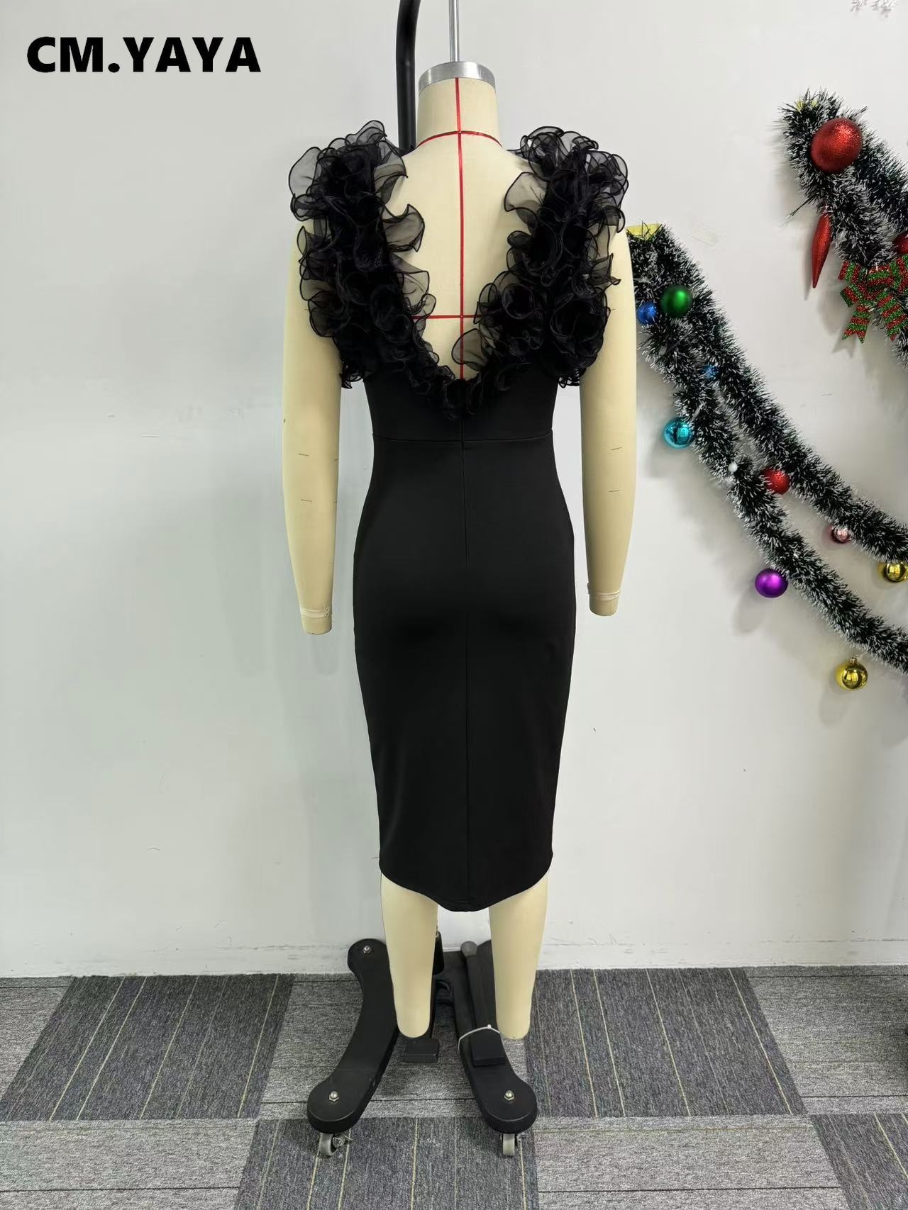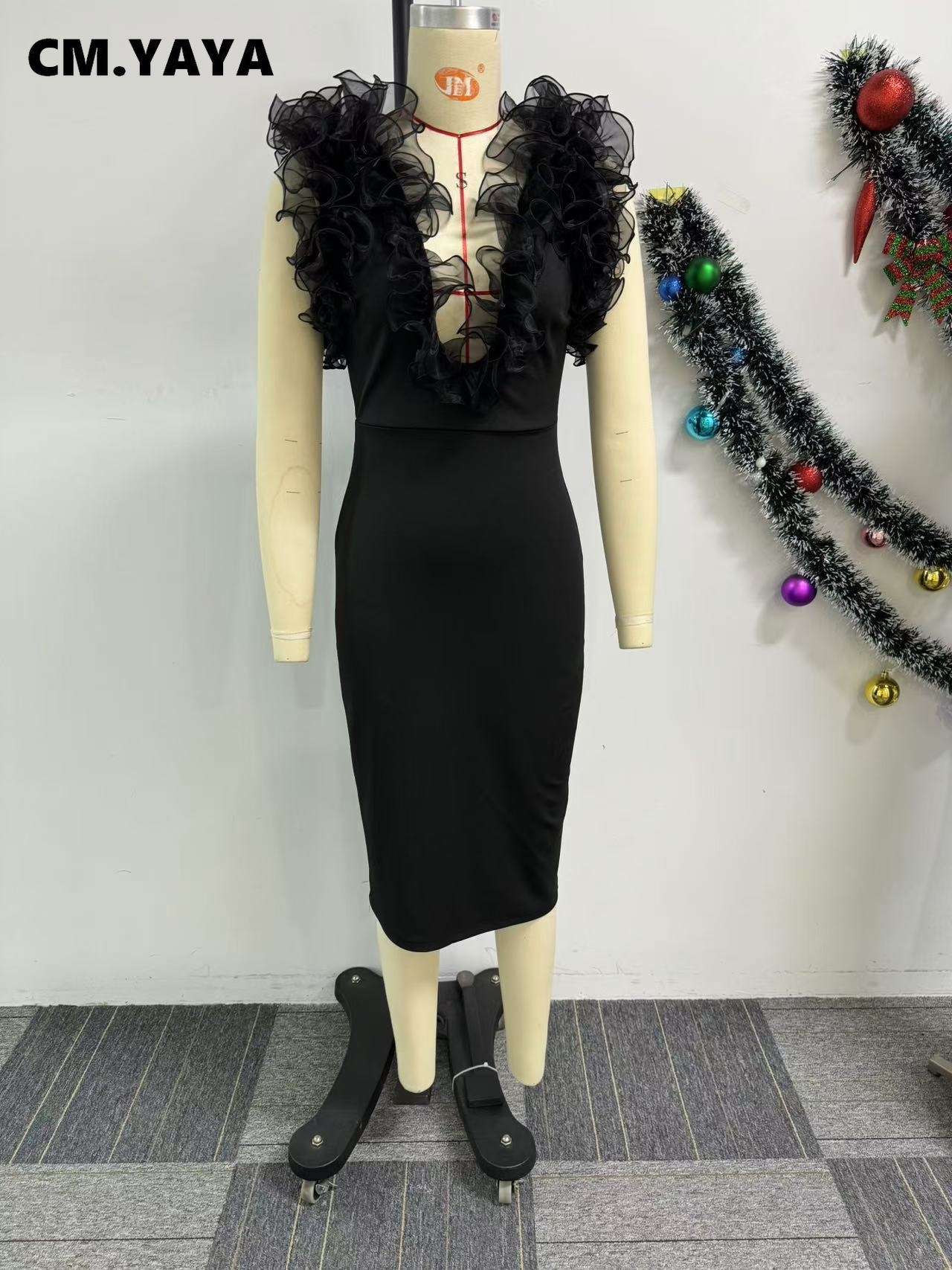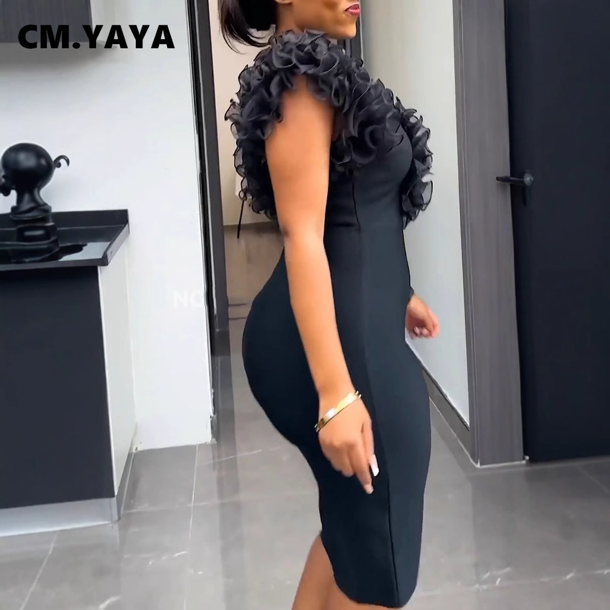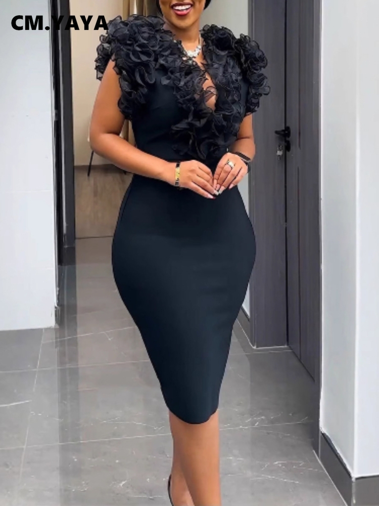 CM.YAYA Women Edible Tree Fungus Short Sleeve V-neck Bodycon Midi Dress 2024 Fall Africa Vestidos Party Sexy Evening Dresses